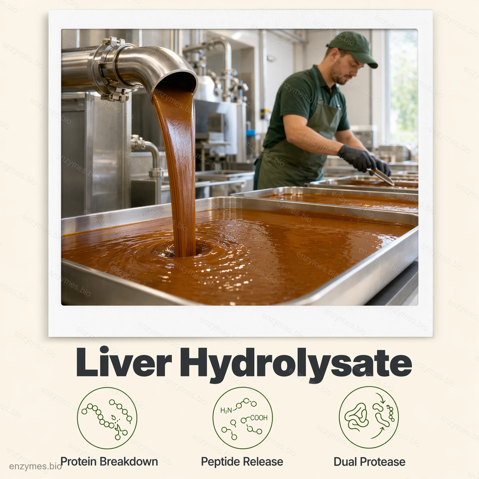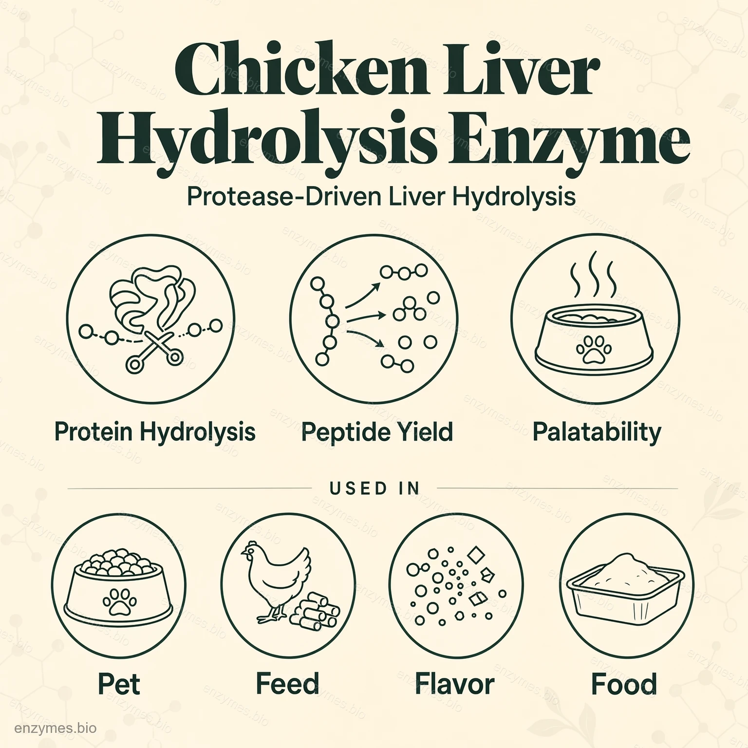 تم تطوير هذا النظام الإنزيمي خصيصًا للتحلل المائي لبروتين كبد الدجاج. من خلال العمل الأنزيمي التآزري، يتم تحويل البروتينات الجزيئية الكبيرة إلى ببتيدات صغيرة وأحماض أمينية حرة، مما يزيد من الاحتفاظ بالمغذيات ويحسن التوافر البيولوجي. يعزز التحلل المائي تطوير النكهة ويدعم الوظائف الغذائية الفائقة في التركيبات النهائية.