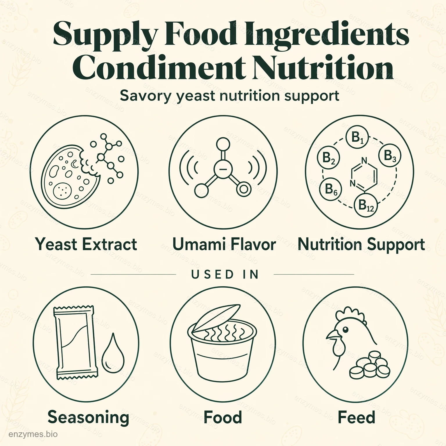 Yeast extract enzyme is a kind of soluble concentrate extract by hydrolyzing yeast, such as brewer’s yeast, Baker’s yeast, etc. Because of the special function, it has been widely used as a flavor enhancer for the specific requirements of instant food, meat product, seasoning, nutrition, health food, and biological culture medium.