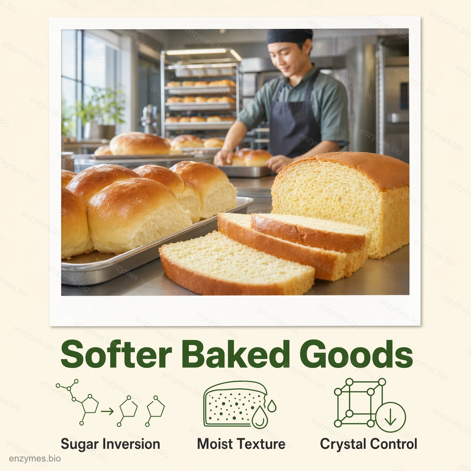 Sucrase is also called “invertase”. One of the glycosidases, invertase (β-D-fructofuranoside fructohydrolase) (EC.3.2.1.26) specifically catalyzes the hydrolysis of β-D-fructofuranoside bonds in non-reducing sugars. It can not only catalyze the hydrolysis of sucrose to produce glucose and fructose, but also catalyze the hydrolysis of raffinose to produce dendriose and fructose.