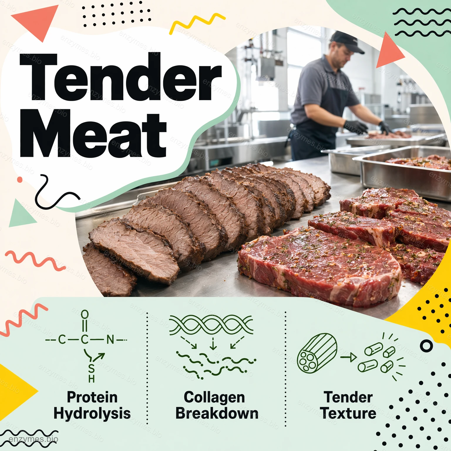 Папаин може да хидролизира мускулните влакна и колагена в пептид с малка молекула или аминокиселина, което може да разруши мускулната нишка и сухожилната нишка и да направи месото крехко и хрупкаво и в същото време по-лесно усвоимо.