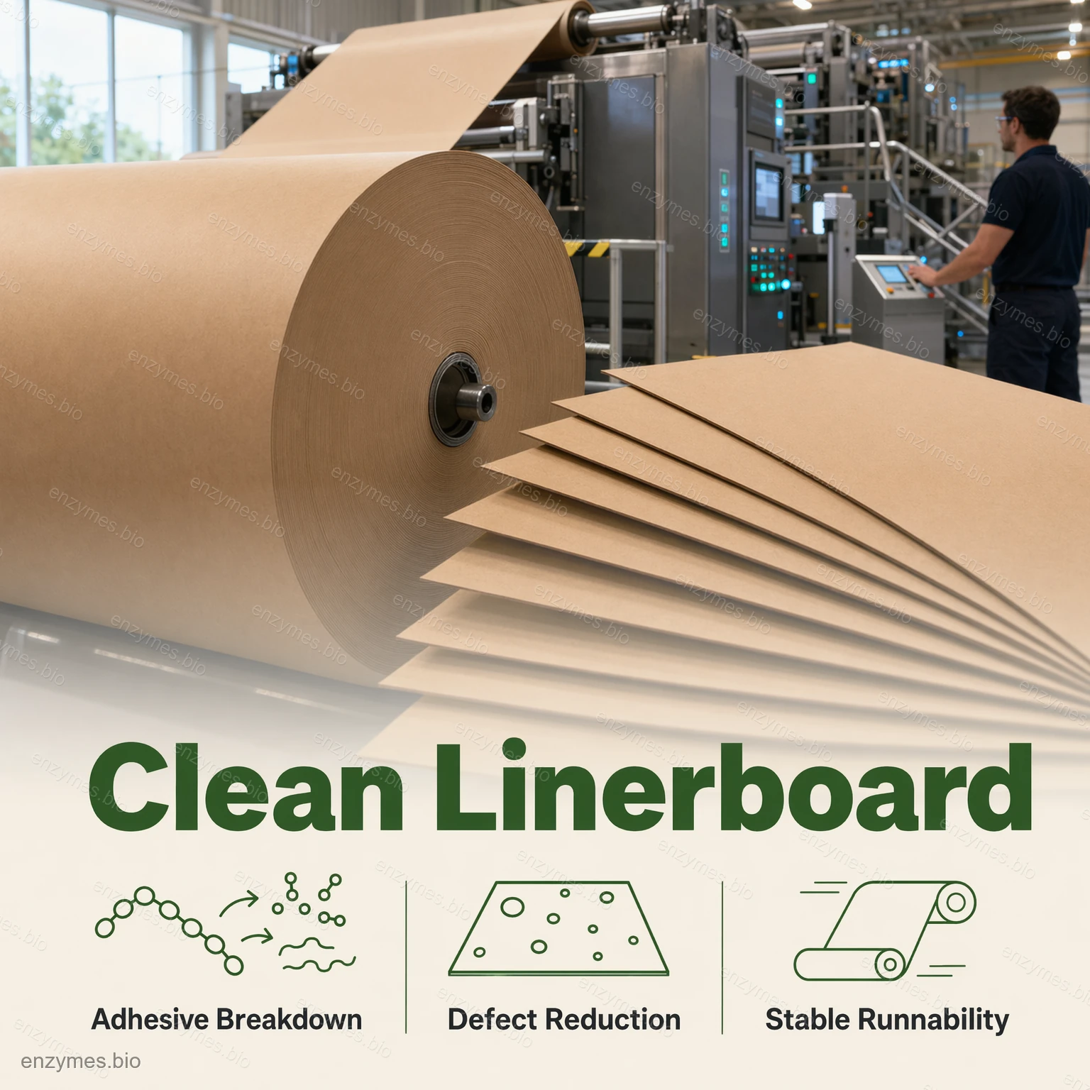 Ензимът спомага за контролиране на замърсяванията на лепилата чрез разграждане на ключови компоненти, които често се срещат в лепилата от рециклирани влакна (като киселинни естери на смоли, синтетичен каучук и свързани с тях лепилни вещества). Тези материали се превръщат в по-разтворими във вода съединения с ниско молекулно тегло. В същото време действието на ензимите подпомага диспергирането и стабилизирането на микрофините частици на стикерите и продуктите от хидролизата, като спомага за предотвратяване на повторното им агломериране в по-големи частици. В резултат на това е по-малко вероятно замърсителите да се отлагат върху оборудването или влакната и е по-вероятно да бъдат пренесени през системата за отстраняване с потока на процеса.