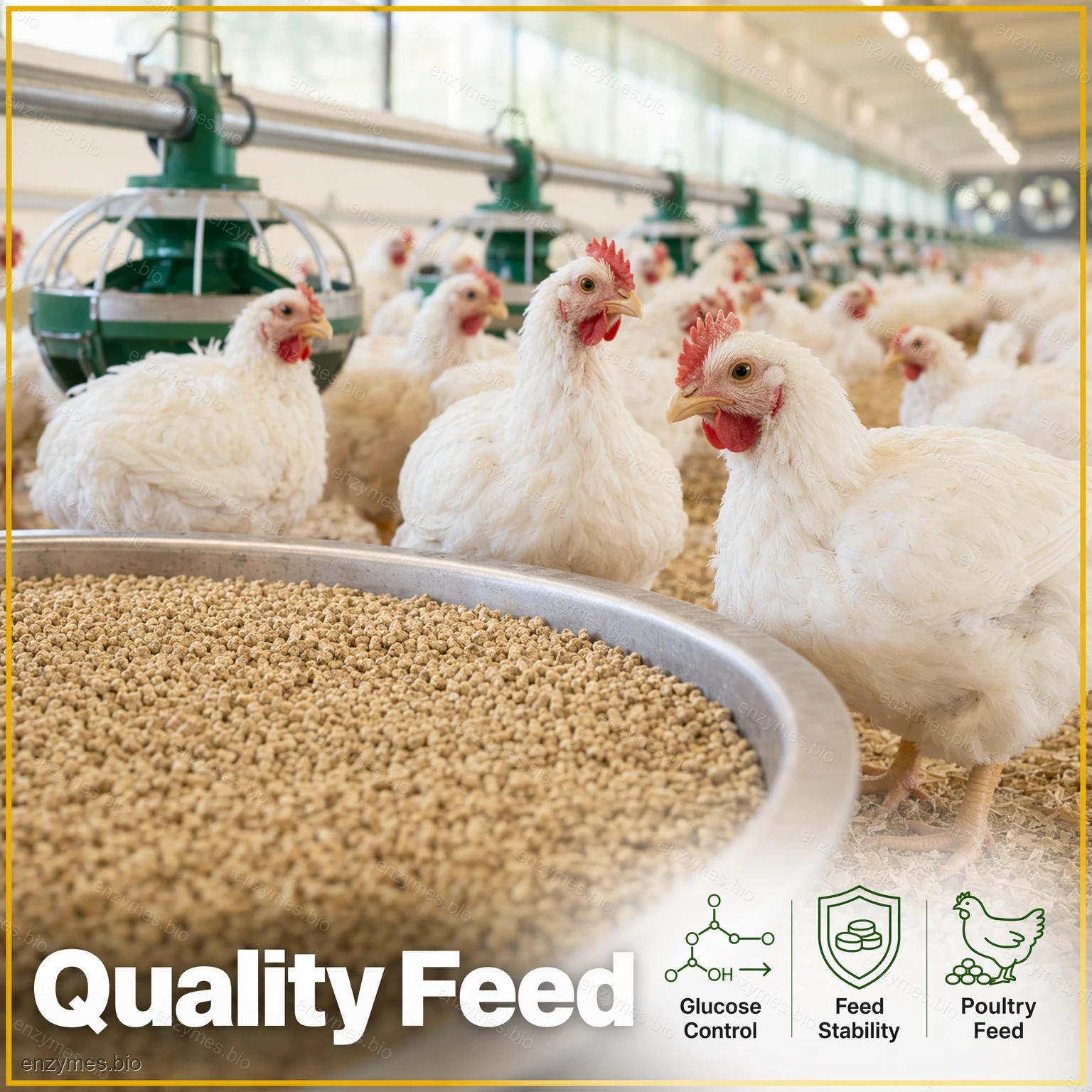 Η οξειδάση της γλυκόζης χρησιμοποιείται ως πρόσθετο ζωοτροφών στην παραγωγή ζωοτροφών για πουλερικά και υδατοκαλλιέργειες. Καταλύει την οξείδωση της γλυκόζης σε γλυκονικό οξύ και υπεροξείδιο του υδρογόνου, το οποίο δρα ως φυσικό συντηρητικό στις συνθέσεις ζωοτροφών.