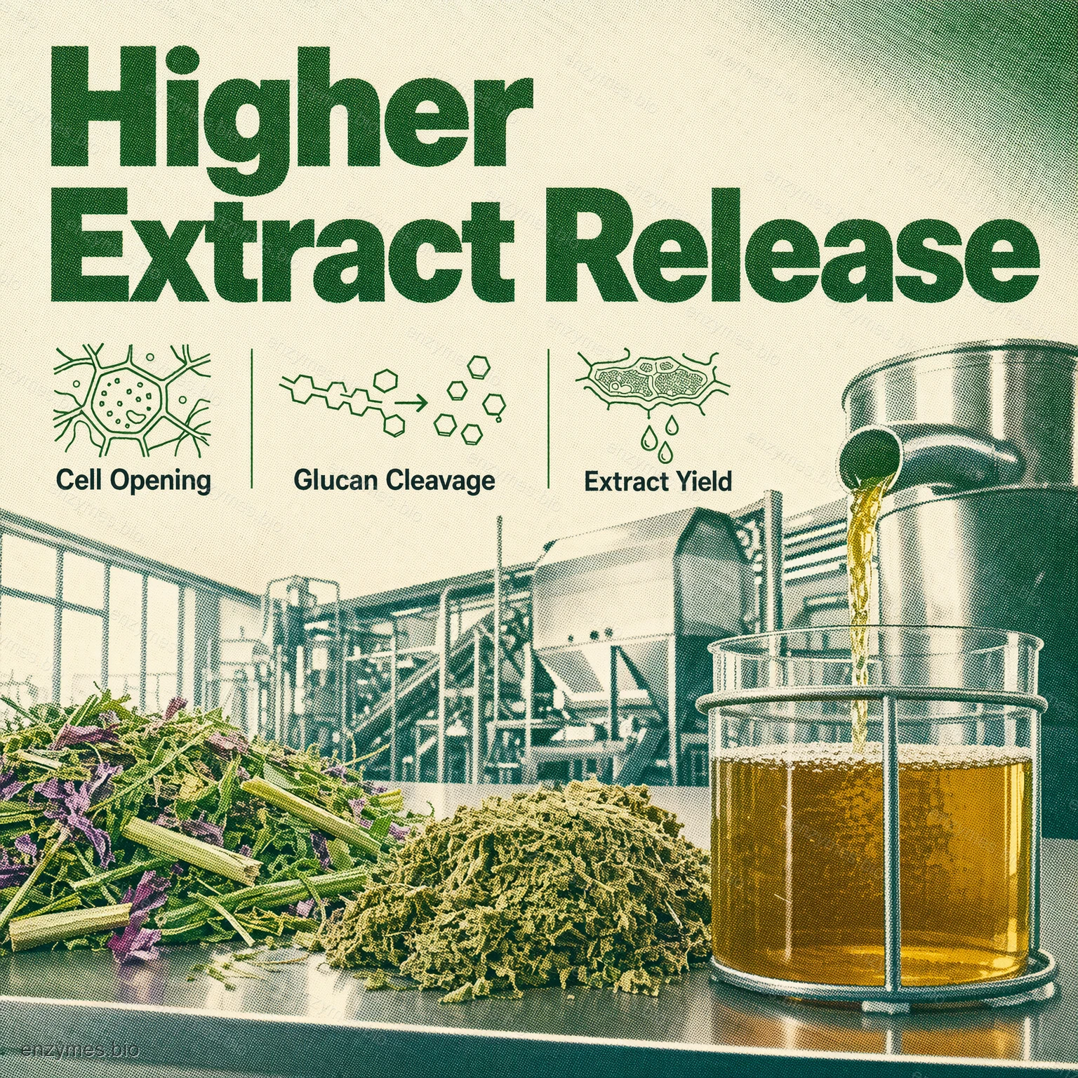 Τρόφιμα, εκχυλίσματα φυτών κ.λπ.: Βελτιώνει την υφή και τη θρεπτική αξία των τροφών και διευκολύνει την εκχύλιση και την απόδοση εκχύλισης φυτών στοχευμένων συστατικών.