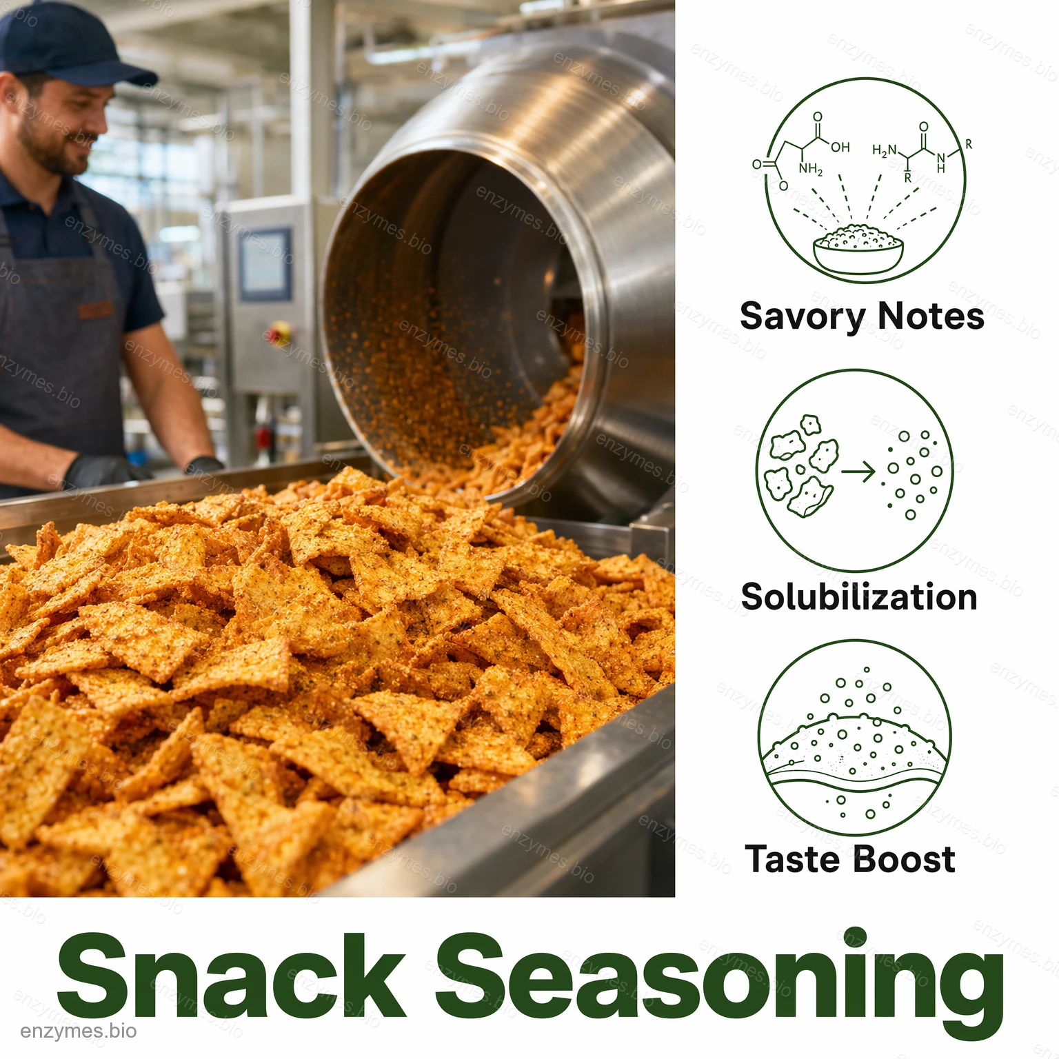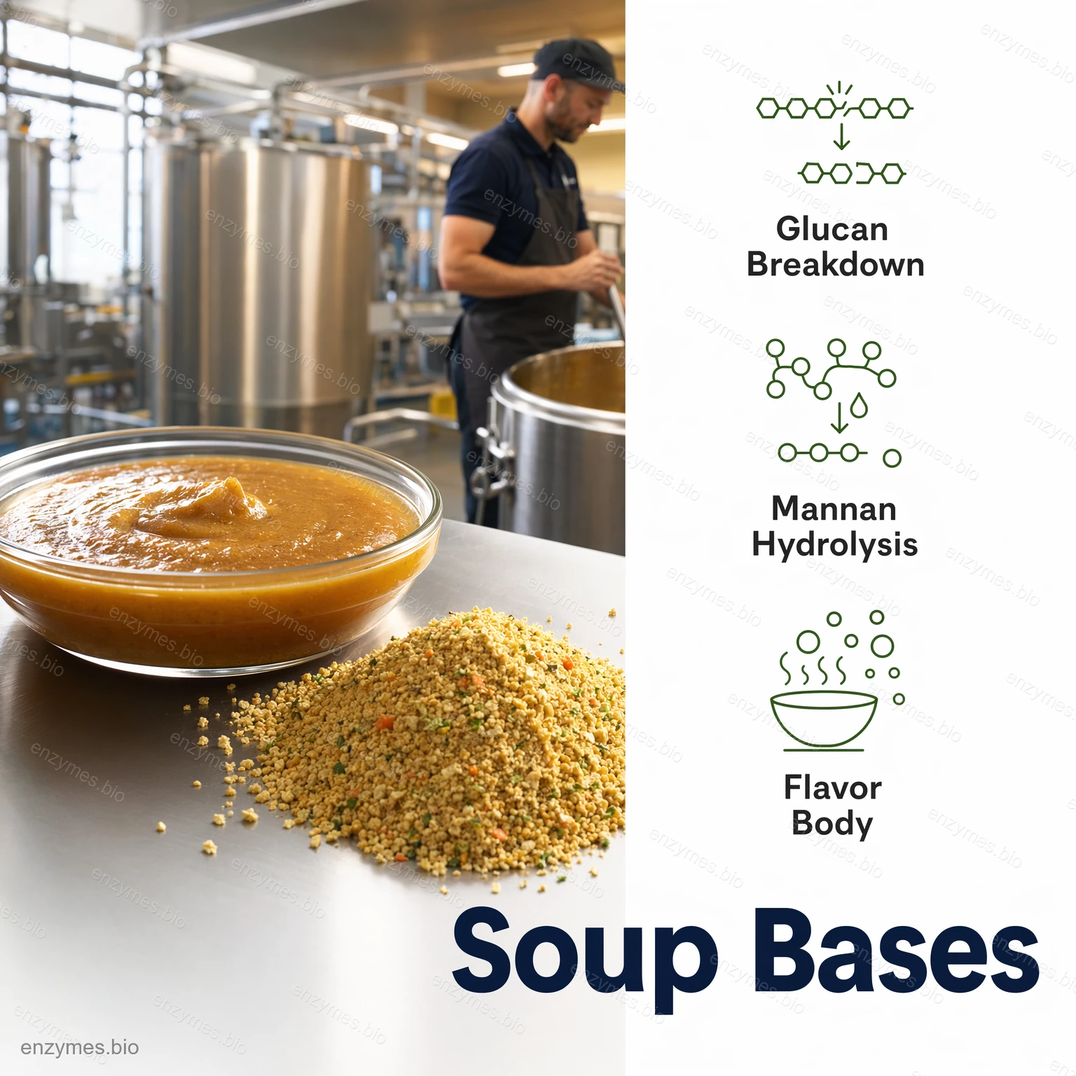Enzima que rompe la pared de la levadura Se puede utilizar para el procesamiento de rehidrólisis de levadura de desecho de cerveza, levadura de desecho de pan, etc., lo que da como resultado un extracto de levadura (también conocido como extracto de levadura o saborizante de levadura). Este extracto mejora la frescura, la fragancia y proporciona una sensación suave a los alimentos. Se usa ampliamente en sopas, salsas y condimentos.