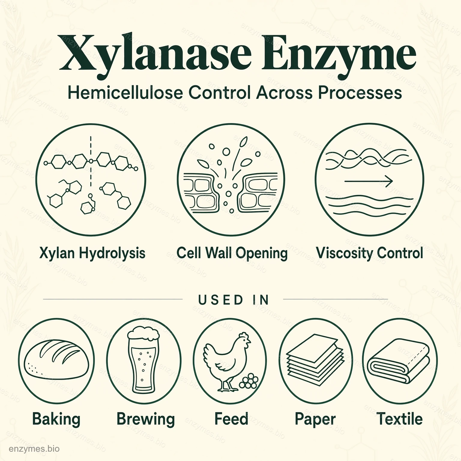 Ksülanaasi saab kasutada õlle- ja söödatööstuses. Ksülanaas võib lagundada õlle- või söödatööstuses kasutatavate toorainete rakuseinu ja β-glükaane, vähendada pruulimismaterjalide viskoossust, soodustada tõhusate ainete vabanemist ja vähendada mitte-tärklise polüsahhariide söödaterades ning soodustada nende imendumist. toitainete kasutamine ja seega lihtsam juurdepääs lahustuvatele lipiidikomponentidele. Ksülanaas on üldnimetus ensüümide rühma kohta, mis võivad ksülaani lagundada oligosahhariidideks ja ksüloosiks, sealhulgas peamiselt ekso-β-1,4-ksülanaas, endo-β-1,4-ksülanaas ja karbohüdraas. Ksülanaas võib lagundada sööda mitte-tärklise polüsahhariide (NSPS) väiksema polümerisatsiooniastmega ksülo-oligosahhariidideks, parandades seeläbi sööda jõudlust, kõrvaldades või vähendades mittetärkliselisi polüsahhariide loomade soolestikus ja maos nende kõrge viskoossuse tõttu ning selle põhjustatud toiteväärtus võib hävitada ka taimeraku seinte struktuuri, parandada endogeensete seedeensüümide aktiivsust ja parandada söödatoitainete kasutamist.