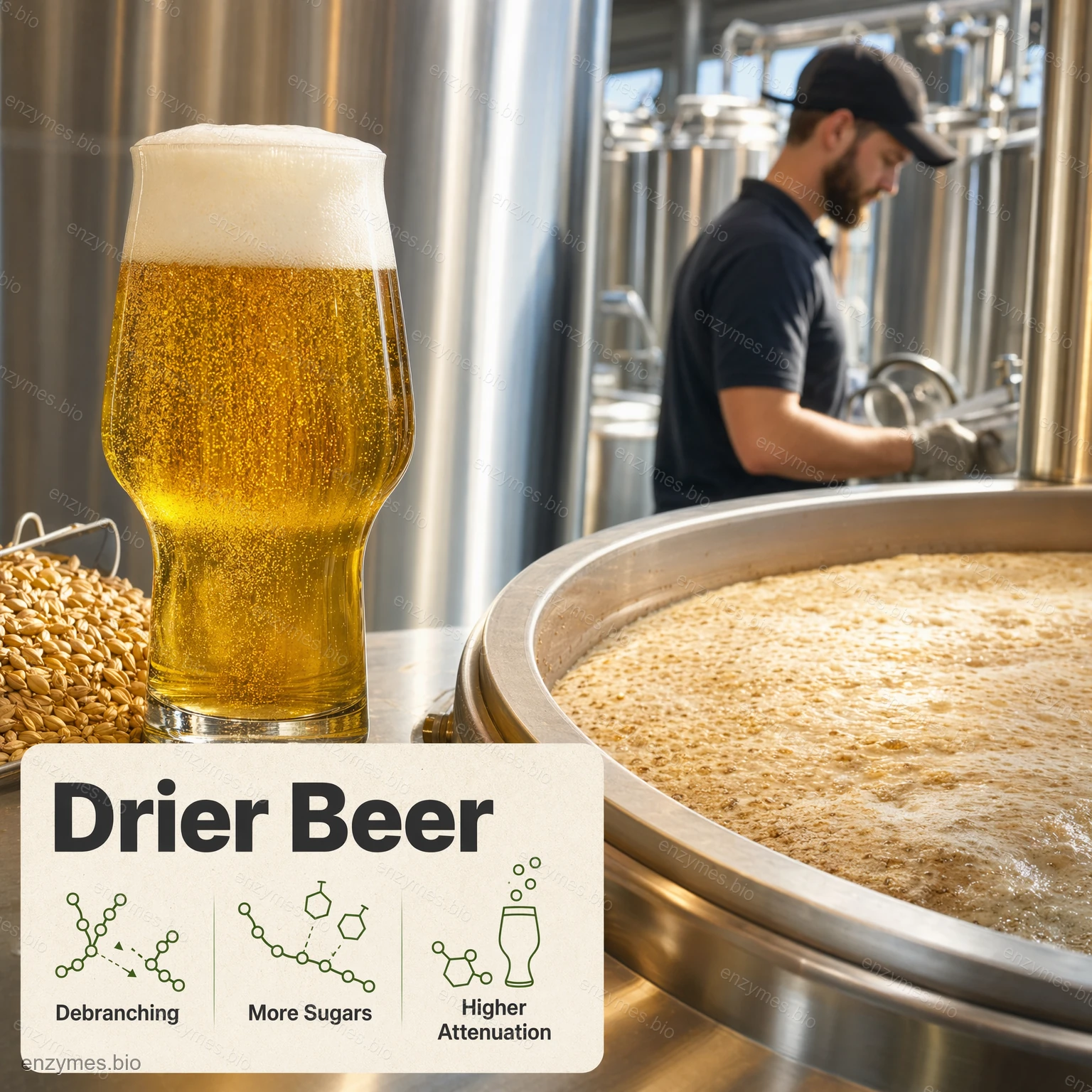 Õlle valmistamisel: Soovitatav kasutuskogus on 0,4–0,8 l ensüümpreparaati iga tonni tooraine kohta. Pullulanaas võib vähendada amülopektiini sisaldust kuiva õlle tootmiseks.