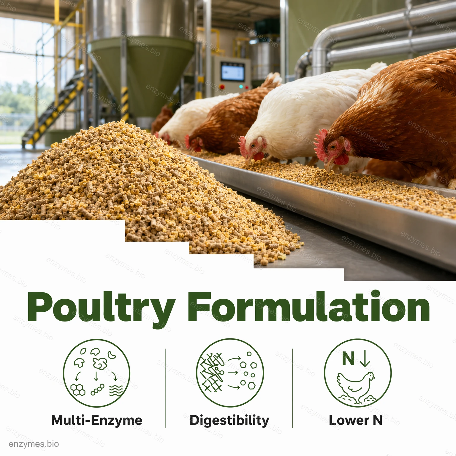 - It can decrease the content of N in poultry’s dejecta, improve their living environment, and avoid environmental stress.