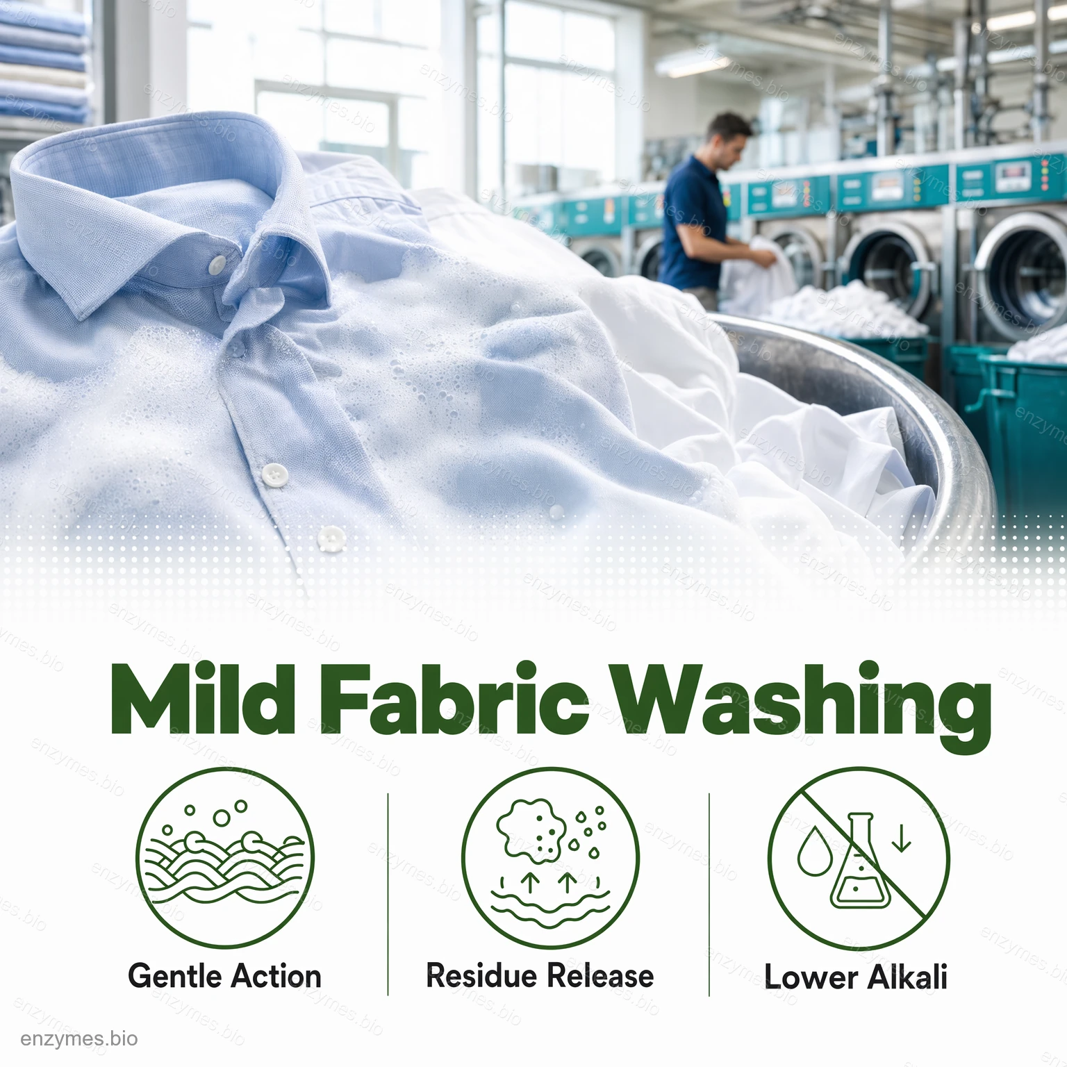 - Lavage doux et moins de dommages aux tissus.