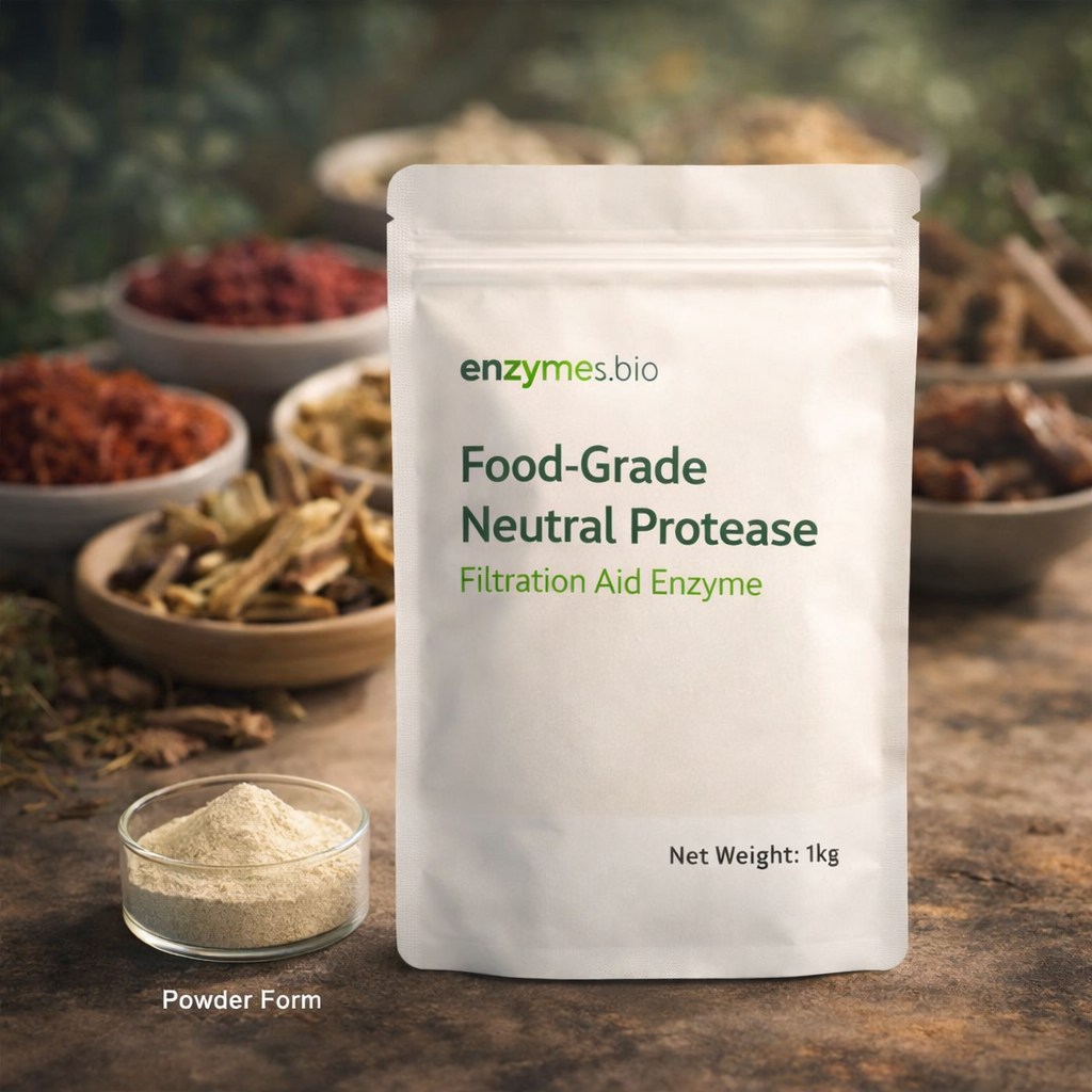 La protéase neutre de qualité alimentaire est un auxiliaire de traitement enzymatique développé pour les applications d'extraction de plantes à condition neutre. Elle est utilisée dans les flux d'extraction botanique pour améliorer les performances de filtration en hydrolysant les protéines et les colloïdes de type protéique qui peuvent contribuer à une viscosité élevée, à la formation de brume et au colmatage des filtres. En décomposant ces macromolécules en peptides plus petits, l'enzyme aide à réduire la viscosité, améliore la fluidité de la liqueur et permet une clarification plus rapide, ce qui se traduit par un flux d'extrait plus propre et des opérations en aval plus stables.
