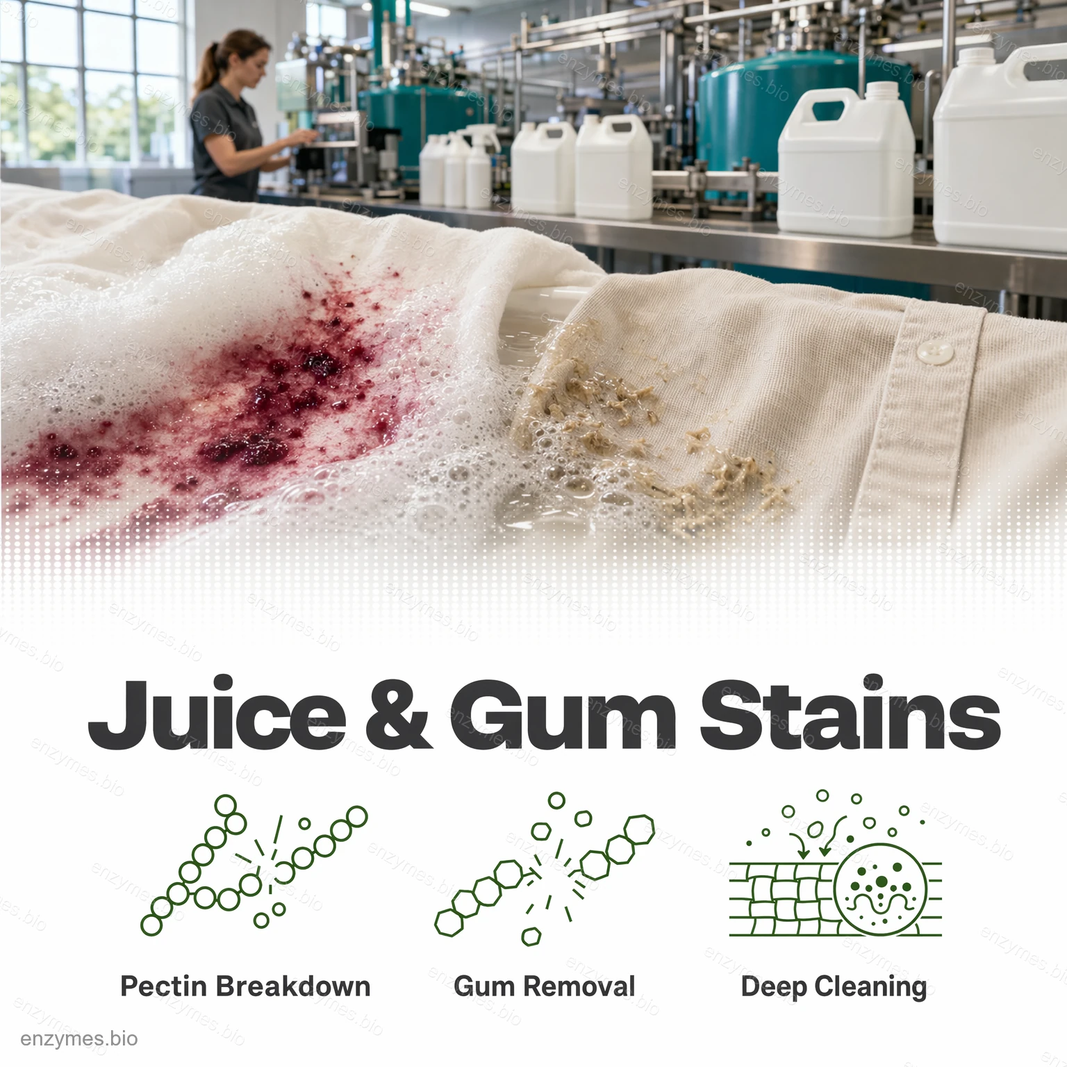 Ce mélange d'enzymes est spécialement formulé pour les applications détergentes. Il contient une combinaison de cellulase, amylase, pectinase, mannanase, et protéase, qui fonctionnent en synergie pour éliminer efficacement les taches tenaces telles que sang, protéine, beurre, rouiller, bière, jus de fruit, et chocolat à partir de tissus.