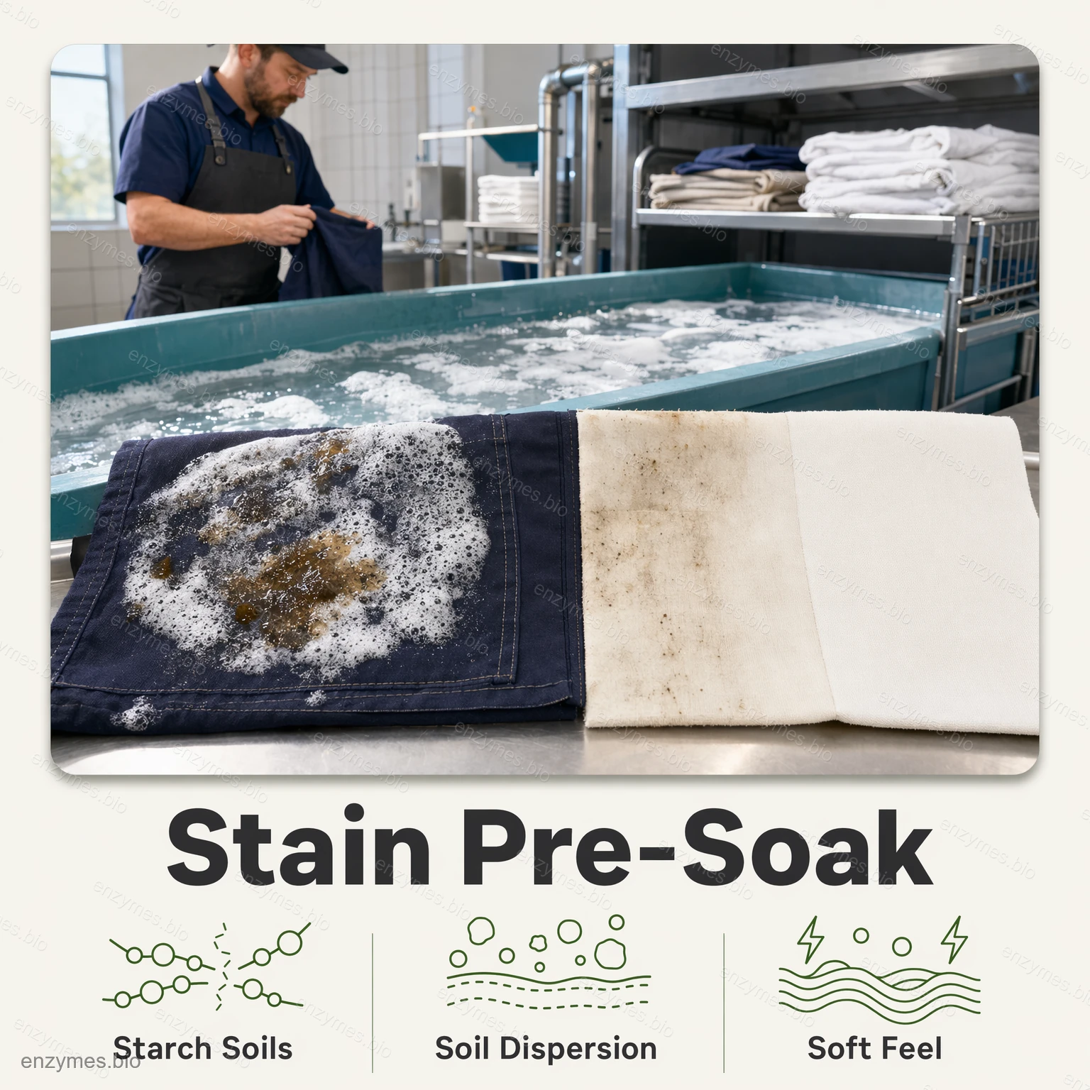 - Stable & Compatible: Hatékonyan működik pH 8,0–10,0 tartományban, és kombinálható enzim alapú vagy nem enzim alapú mosószerekkel.