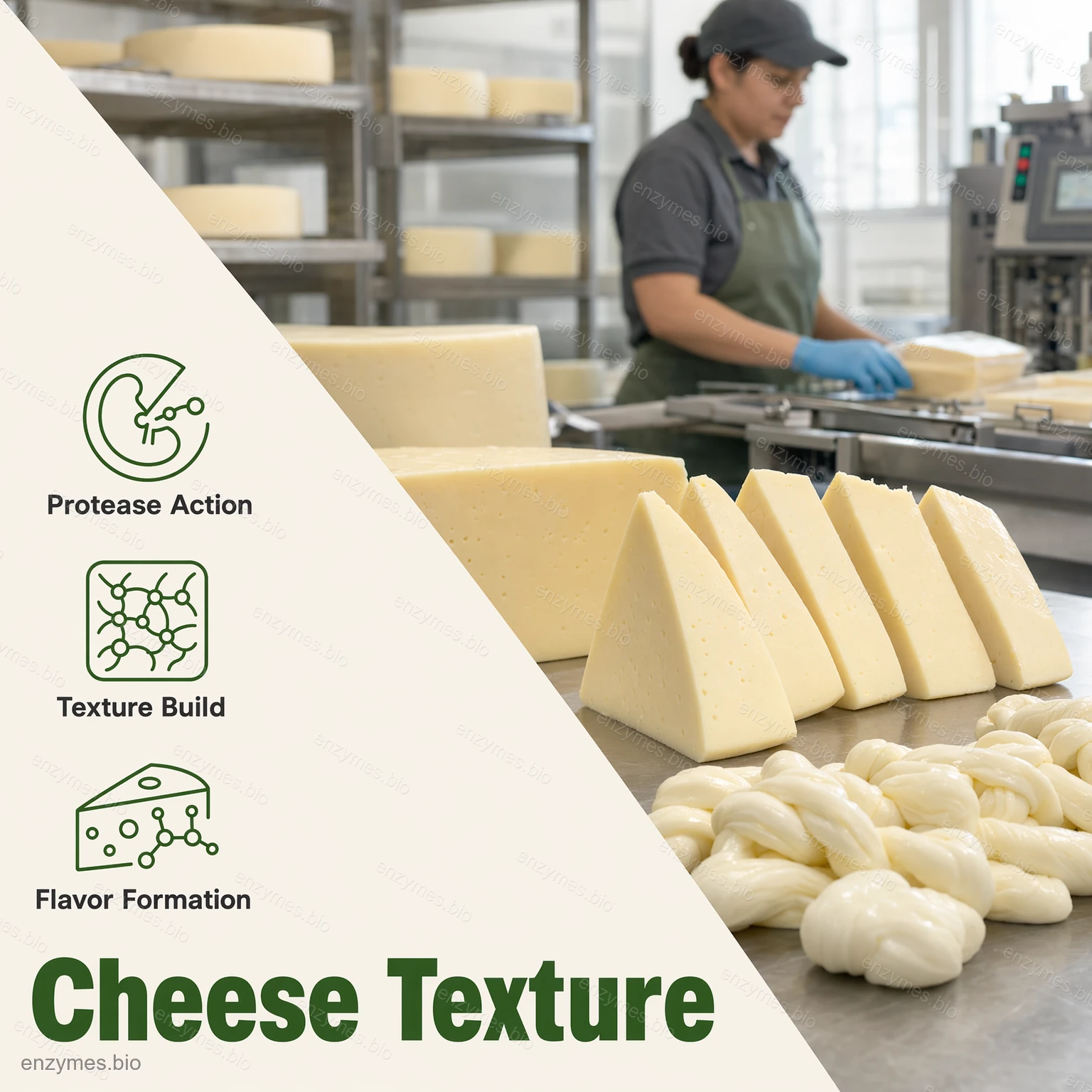 Chymosin is an aspartic protease first found in the stomach of unweaned calves. It can specifically cleave the peptide bond between Phe105-Met106 of κ-casein in milk and destroy the casein micelles. Milk coagulation, rennet’s coagulation ability, and proteolytic ability make it a key enzyme in the formation of texture and special flavor in cheese production. It is widely used in the production of cheese and yogurt.