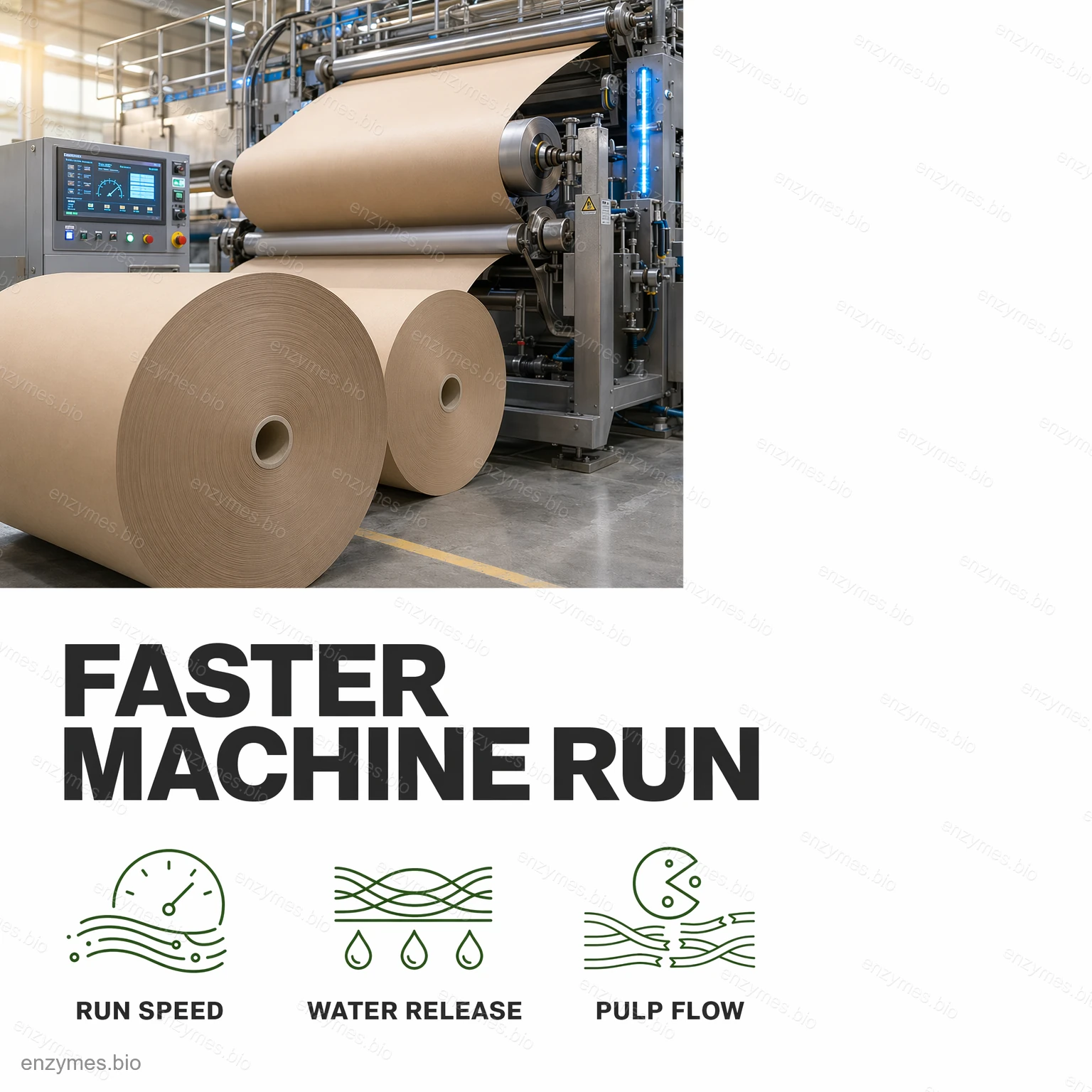 A vízszűrő enzim SUN72 egy biológiai enzimkompozit készítmény, amelyet kifejezetten másodlagos rostpépre alkalmaznak. A hulladék papírpép előkezelése jelentősen javíthatja az iszap szűrési sebességét, különösen alkalmas a hulladék papírpép nagysebességű papírgépes papírgyártáshoz, csomagolópapírhoz.