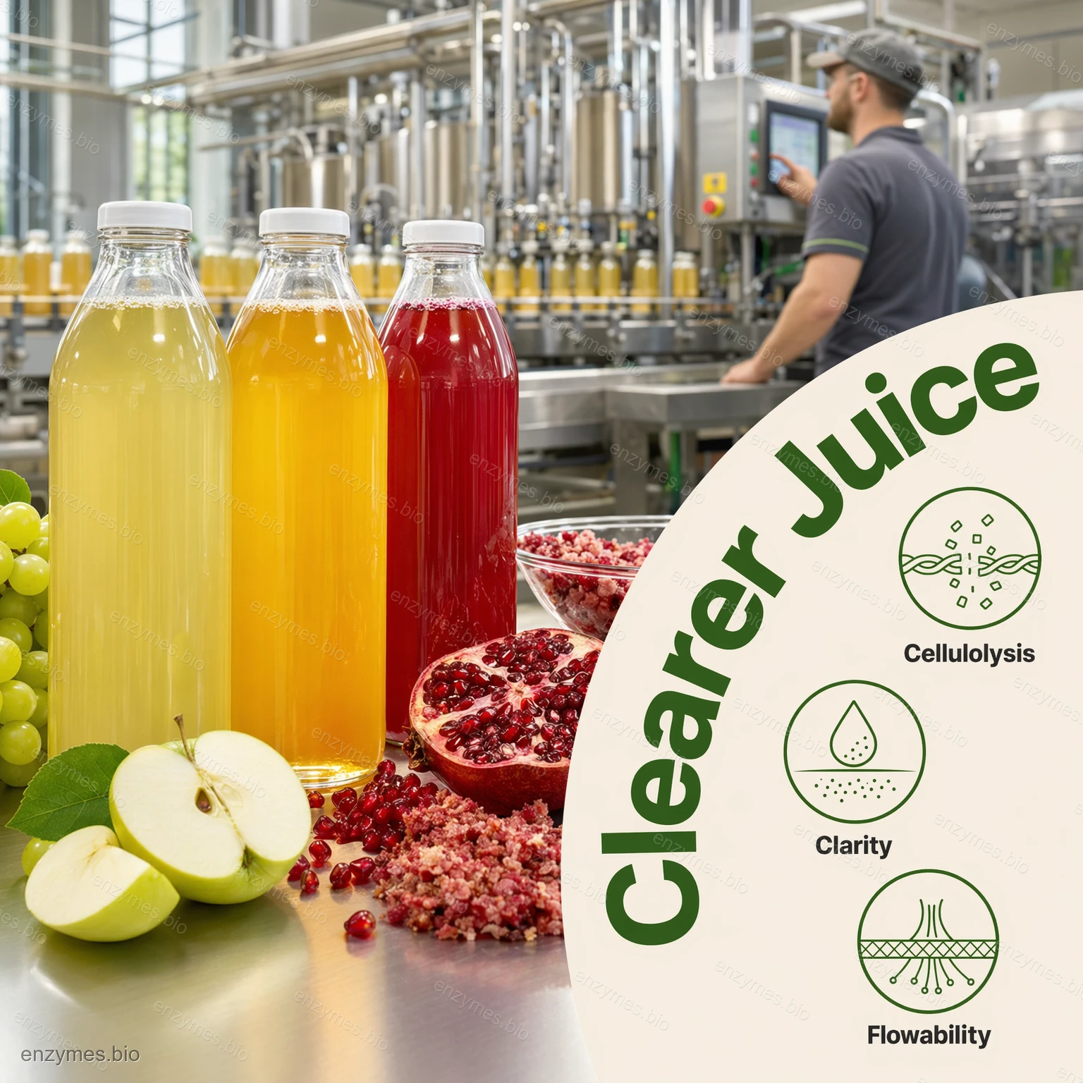 Dinding sel tumbuhan terdiri utama dari selulosa, hemiselulosa, lignin, dan pektin. Enzim selulase ini memecah struktur yang kaya selulosa, memungkinkan pelarut menembus lebih efektif dan melepaskan komponen tumbuhan yang berharga. Hasilnya adalah peningkatan hasil panen, ekstraksi warna yang lebih baik, pelepasan rasa yang lebih optimal, dan filtrasi yang lebih halus.