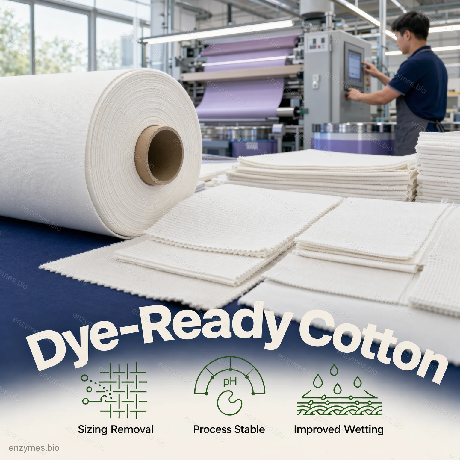 Il prodotto viene prodotto attraverso una fermentazione microbica non patogena e formulato come sistema di α-amilasi ad alta attività. Idrolizza rapidamente i legami glicosidici α-1,4 nelle molecole di amido, convertendo l'amido insolubile in destrine a catena corta e zuccheri idrosolubili. Ciò consente un'efficiente sbozzimatura, bassi livelli di residui ed eccellente compatibilità con i tessuti.