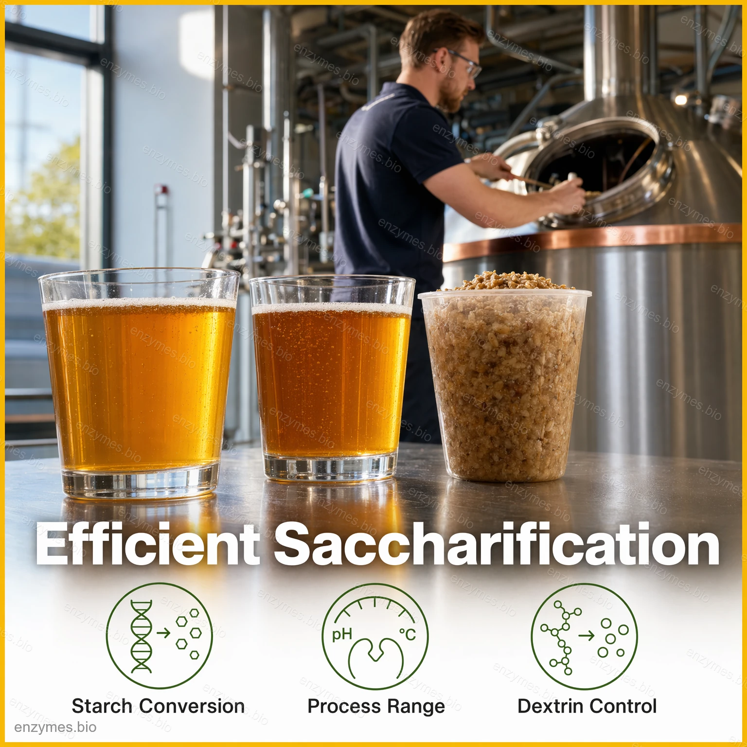 Il prodotto viene ottenuto miscelando una proporzione attentamente ottimizzata di glucoamilasi e pullulanasi, derivanti rispettivamente dalla fermentazione sommersa di Aspergillus niger e Bacillus subtilis. La combinazione di glucoamilasi con la pullulanasi, ingrediente essenziale del prodotto, rende la saccarificazione più efficiente, evitando la formazione di destrine e sottoprodotti, e consentendo quindi di ridurre i costi di lavorazione e di produrre una maggiore quantità di glucosio.