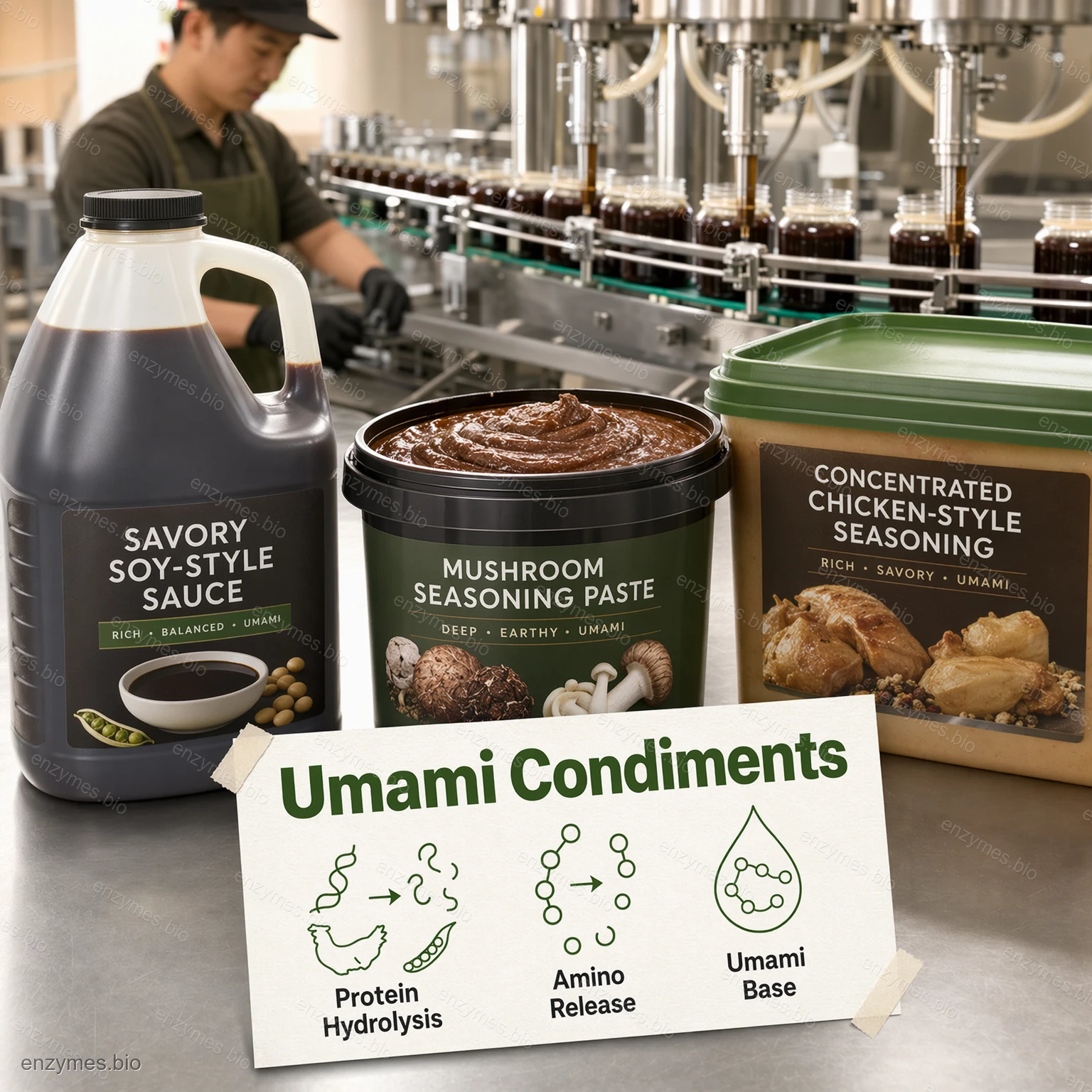 パパインは、チキンエキス、油、醤油、キノコエキスなどの調味料の製造に使用される動物性および植物性のタンパク質を加水分解します。