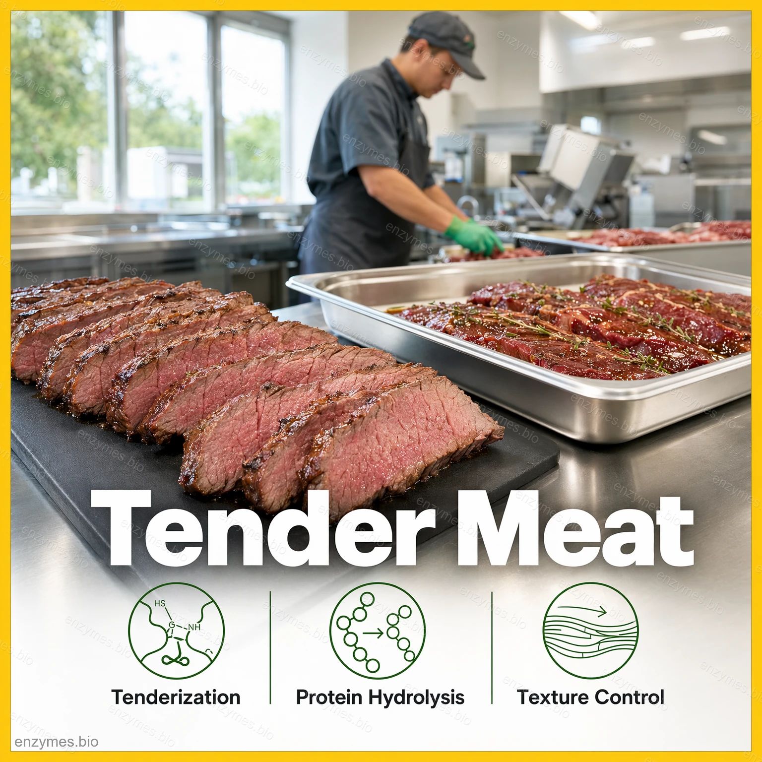 ブロメラインは、食肉の軟化、タンパク質の加水分解、ビールやワインの清澄化など、食品加工において幅広く利用されています。また、繊維加工、皮革の柔軟化、化粧品の角質除去剤の処方にも用いられています。業務用酵素原料としてバルクで入手可能です。.