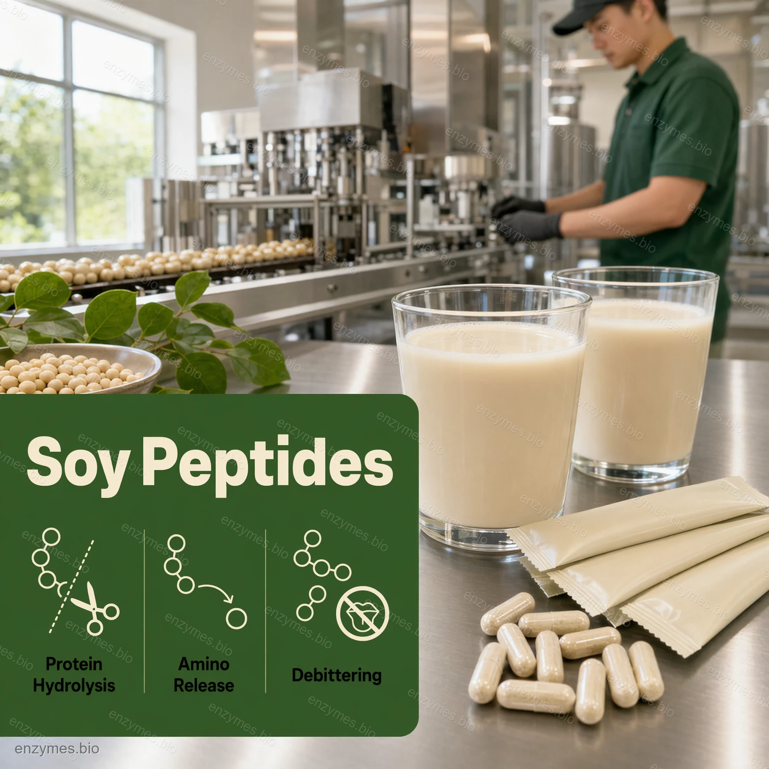 대두박 가수분해효소 엔도뉴클레아제에 의해 단백질의 내부 펩타이드 사슬을 중간에서 절단하고 엑소뉴클레아제에 의해 폴리펩타이드 사슬의 끝에서 아미노산을 방출합니다. 가수분해물의 아미노산 균형이 좋고, 플레이버자임은 대두 단백질 펩타이드의 풍미를 개선하여 가벼운 콩 풍미, 쓴맛 없음, 가벼운 맛을 갖게 합니다.