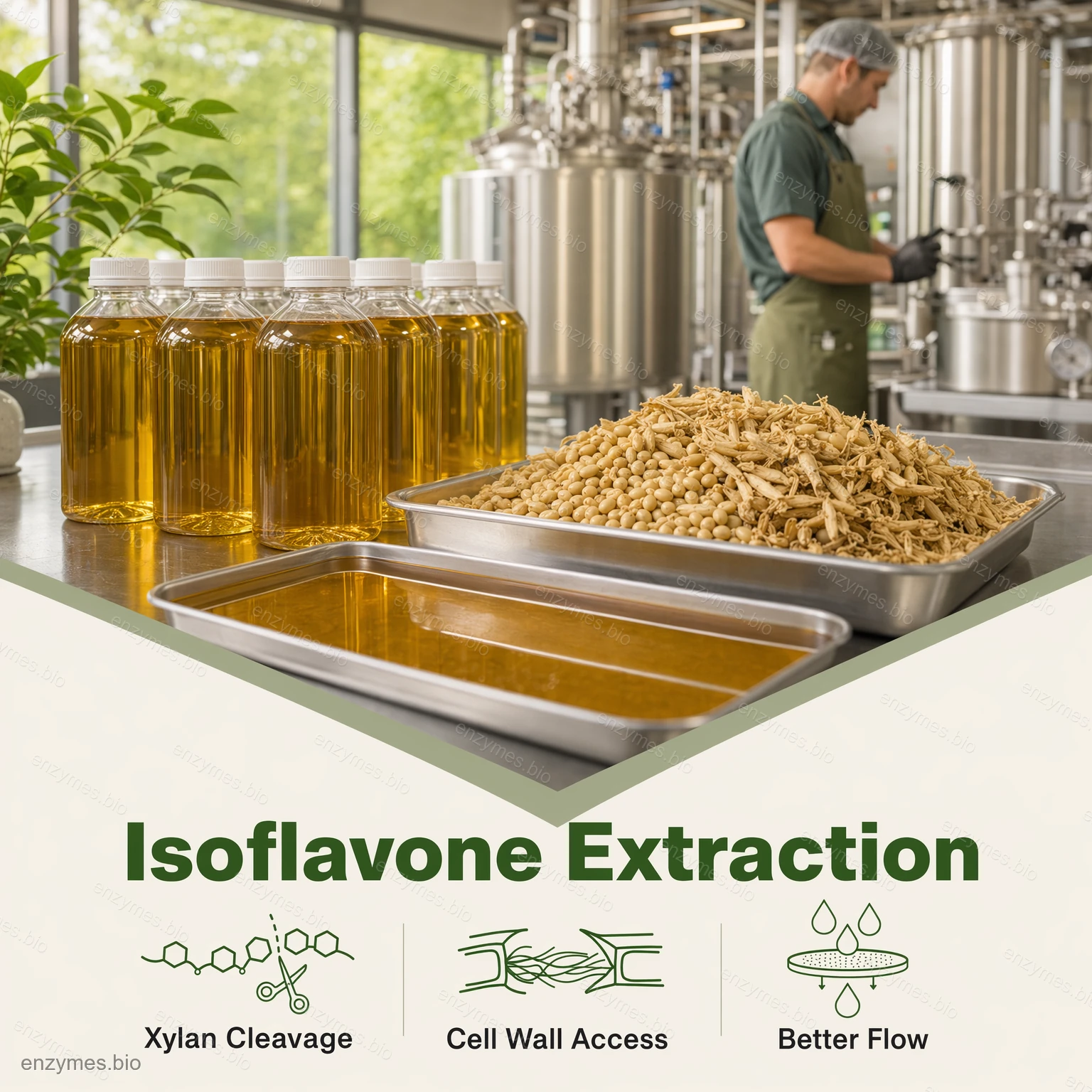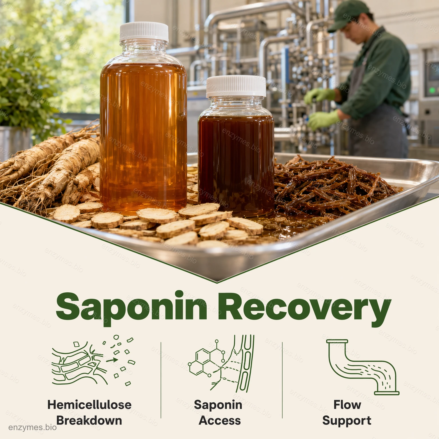 자일라나아제는 식품 등급의 효소 제제로서 다음과 같은 활성을 가지고 있습니다. 110,000 U/g, 식물 추출 및 허브 재료 가공용으로 설계되었습니다. 다음과 같은 워크플로우에 사용됩니다. 이소플라본 and 사포닌, 그리고 다당류 고분자 응집체의 중합 해리 향상된 추출 성능 및 복구 지원 가수분해 제품. 허브 가공에서 자일라나제는 일반적으로 다음에 적용됩니다. 슬러리 및 여과액 점도 감소, 를 사용하여 유동성을 개선하고 여과 및 정화와 같은 다운스트림 작업을 보다 원활하고 일관되게 실행할 수 있습니다.