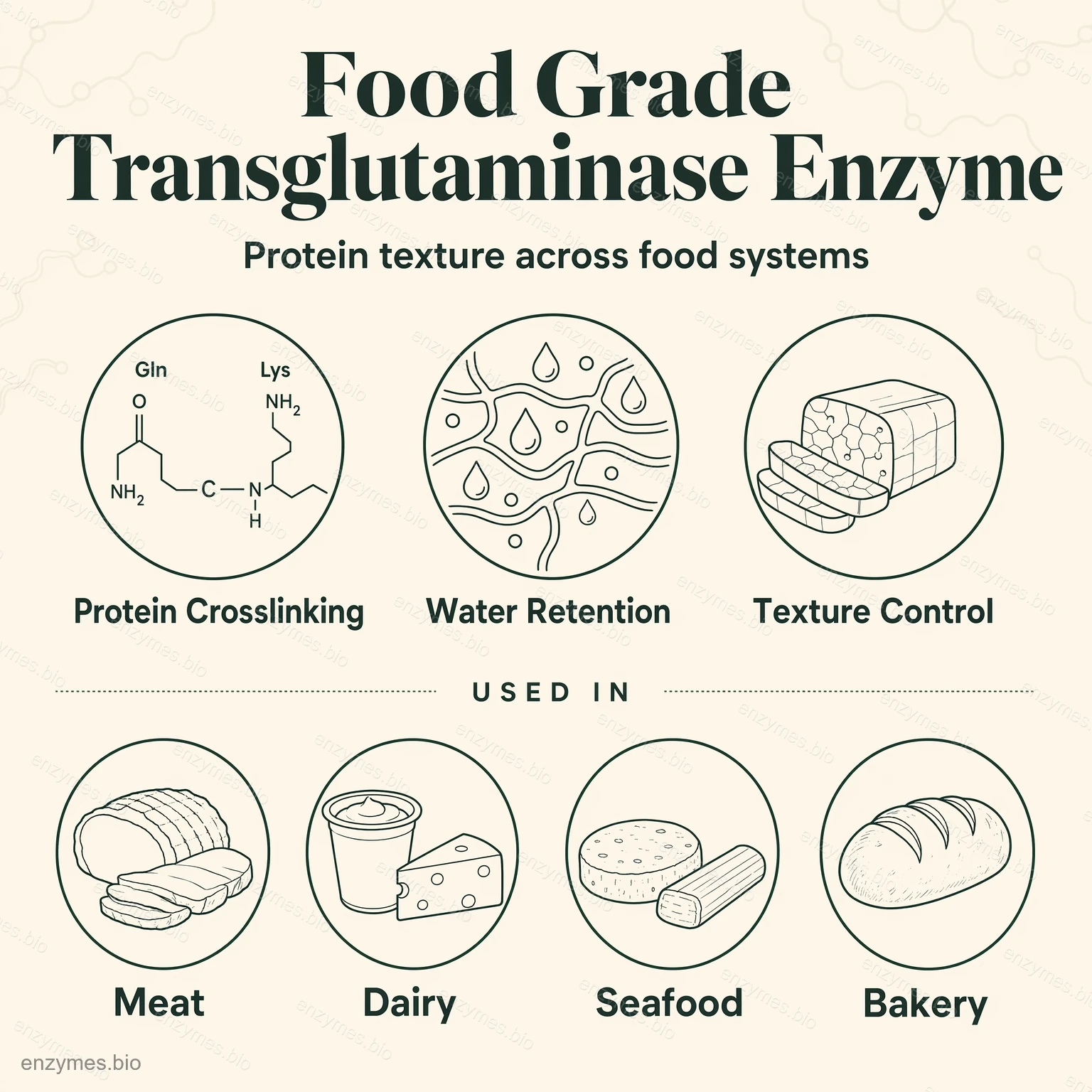 Transglutaminazė (TG) - tai fermentas, galintis katalizuoti transaminacijos reakciją. Jis katalizuoja L-lizino r-aroilamino-hidroksibutirato prisijungimą prie glutamo rūgšties. Taip vyksta baltymų ar peptidų kovalentinis susiejimas ir susidaro kovalentinių junginių polimeras. Maisto pramonėje TG naudojamas mėsos ir baltyminių produktų funkcinėms savybėms pagerinti, pavyzdžiui, pagerinti mėsos struktūrą, gelio savybes, elastingumą, sulaikyti vandenį ir riebalus ir pan. Tuo pačiu metu apsaugomas lizinas, todėl išvengiama Maillard'o reakcijos.
