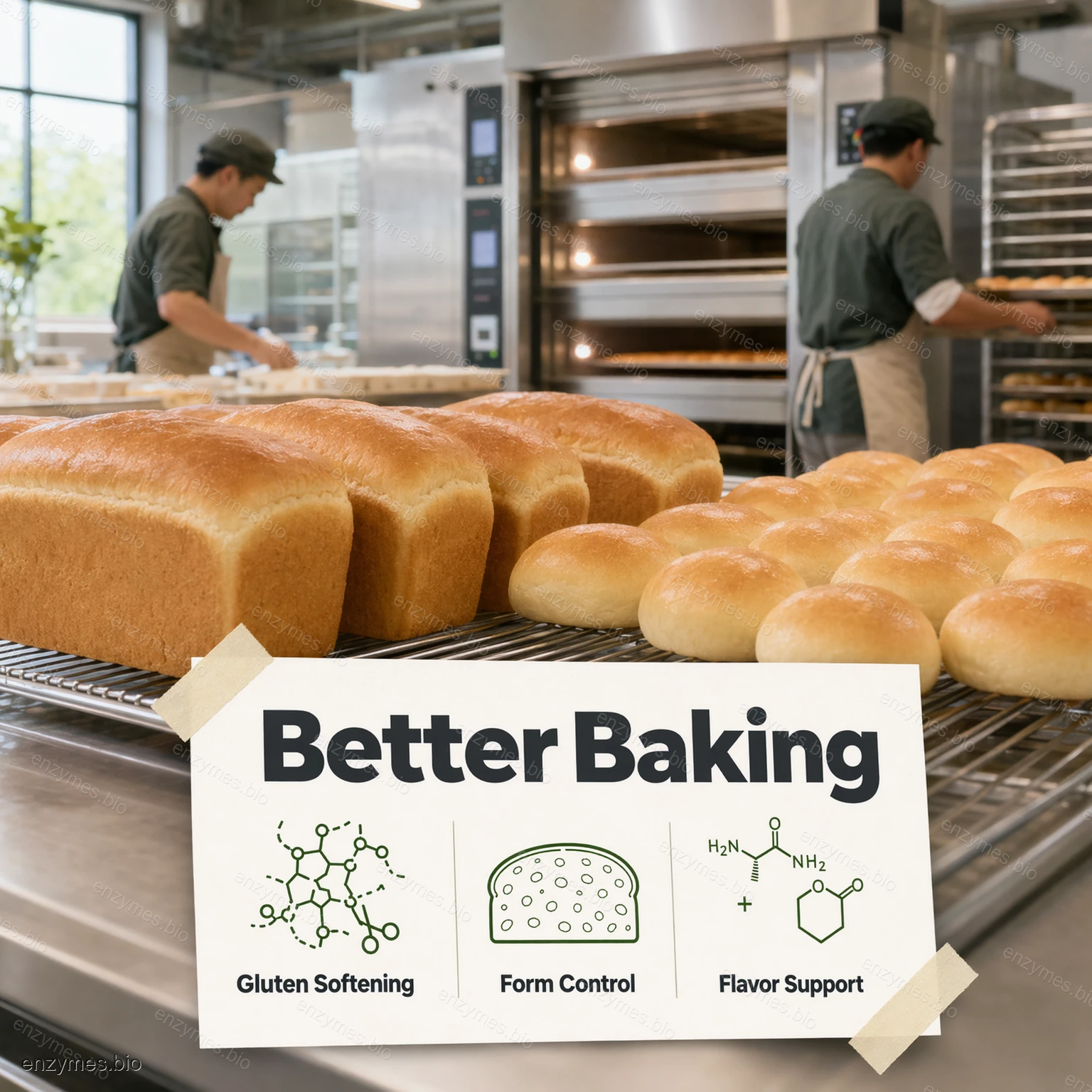 Papainas gali sumažinti tešlos švelnumą dėl miltų baltymų hidrolizės, todėl kepiniai gali būti gerai suformuoti ir sumažinti defektų skaičių. Tuo tarpu trumpas peptidas ir amino rūgštis iš hidrolizės gali pagerinti skonį ir sumažinti aliejaus bei cukraus kiekį per Maillard reakciją su cukrumi.