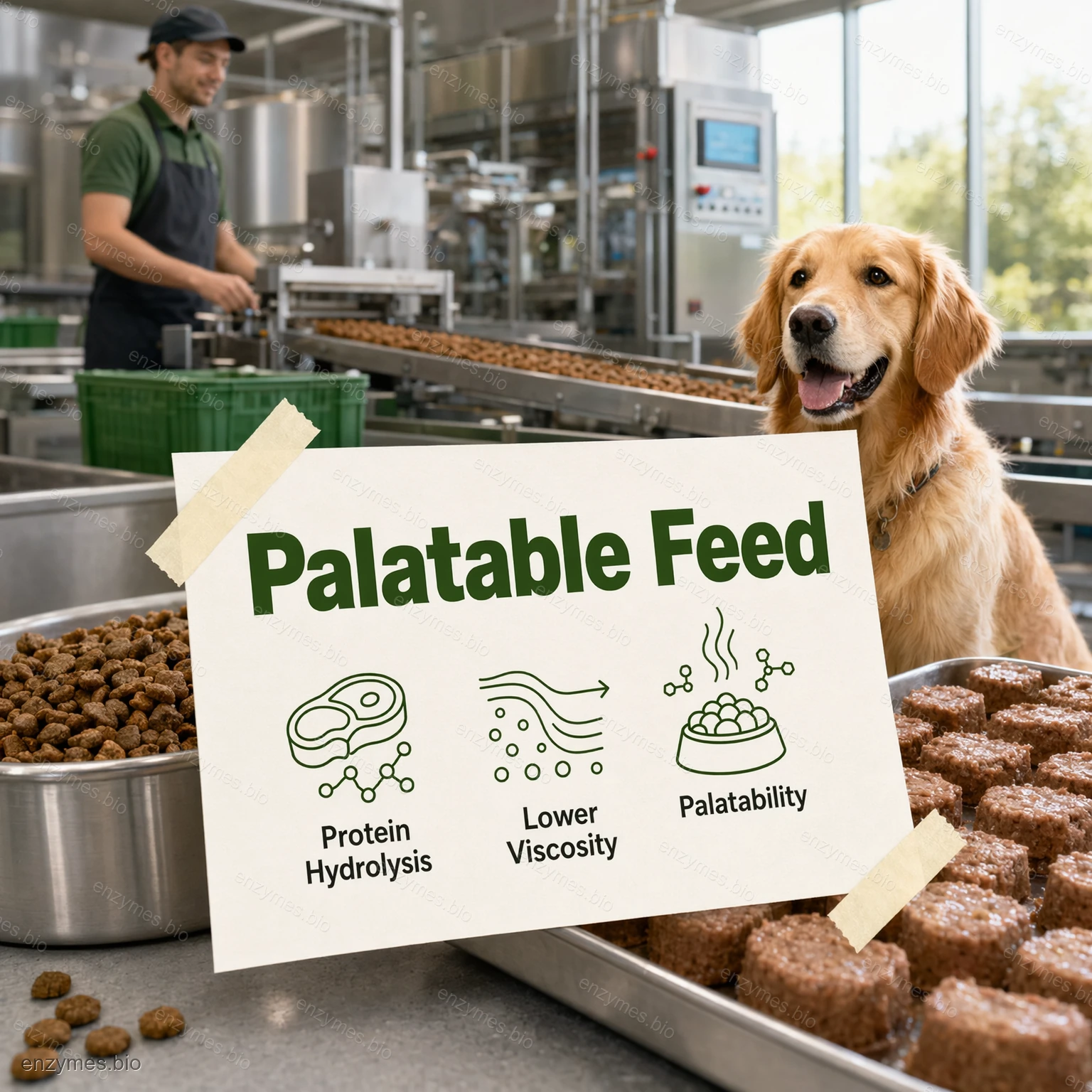 Jis gali būti dedamas į pašarus, siekiant pagerinti pašarų maistinę vertę ir sumažinti šėrimo išlaidas. Hidrolizė, naudojama mėsos baltymų likučių hidrolizei, gali sumažinti gatavo produkto klampumą, pagerinti skonį ir skonį bei pagaminti aukštos kokybės naminių gyvūnėlių maistą.