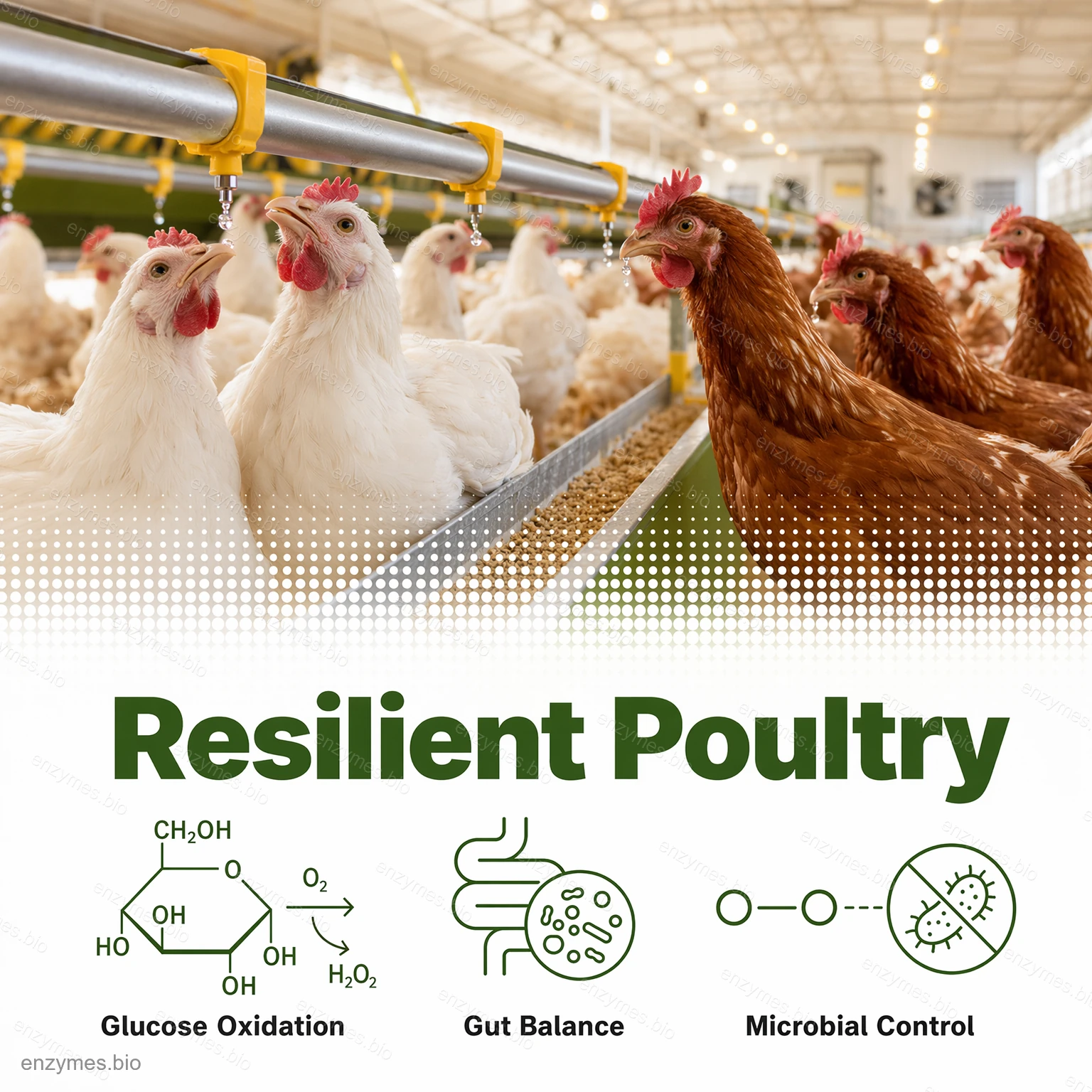 Glikozes oksidāze (dzeramā ūdens lietošanai) ir barības kvalitātes fermentatīvs šķīdums, kas izstrādāts lopkopības un mājputnu audzēšanas sistēmām, lai atbalstītu zarnu veselību, mikrobu līdzsvaru un mikotoksīnu riska pārvaldību, izmantojot dzeramo ūdeni. Tas ir piemērots cūkām, liellopiem, aitām, kazām, broileriem, dējējvistām, pīlēm un citiem lauksaimniecības dzīvniekiem.