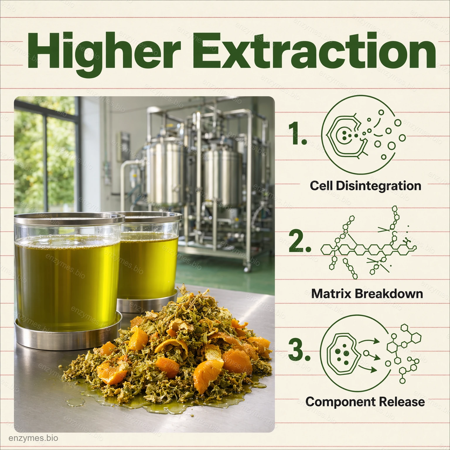 - Augu ekstrakts: lielāka mērķa komponentu ražība, vienmērīgāka.