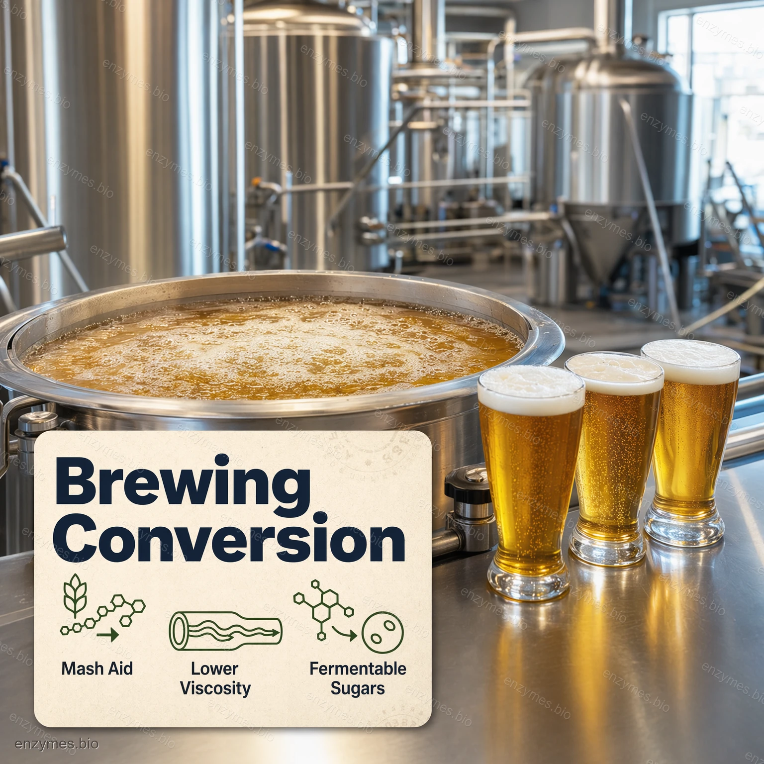 Ølindustrien: Anbefalt påføringsmengde er 0,4–0,8 l enzympreparat per tonn totalt råmateriale, tilsatt ved messing.
