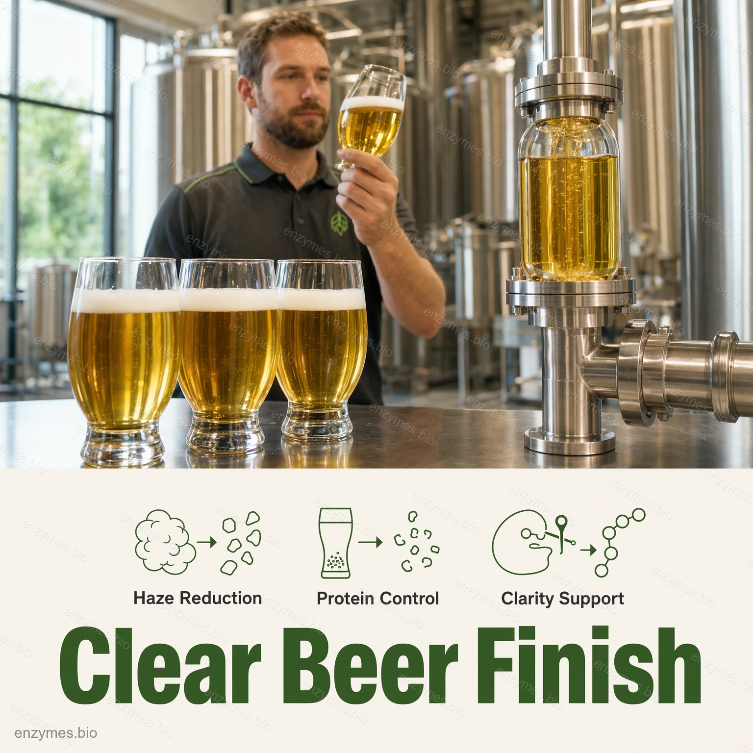 Papaïne kan eiwitten in bier verder hydrolyseren om meer peptiden of aminozuren te produceren, waardoor de wijn helderder wordt en de smaak van bier verbetert. Het wordt aanbevolen om 0,08mg/100mL papaïne aan bier toe te voegen tijdens het diepvriesopslagproces voor een beter klaringseffect.