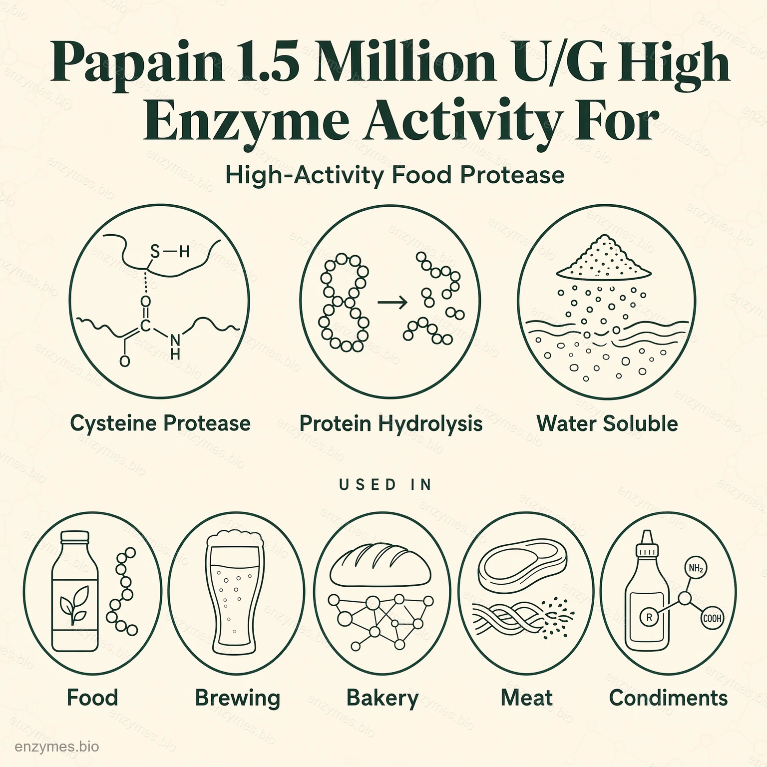 Het actieve centrum bevat cysteïne en het is een sulfhydryl-bevattende endoprotease met protease- en esterase-activiteit. Het heeft een sterk hydrolytisch vermogen ten opzichte van dierlijke en plantaardige eiwitten, peptiden, esters, amiden, enz. Dankzij de hoge enzymactiviteit, goede thermische stabiliteit en natuurlijke veiligheid wordt het veelvuldig gebruikt in de voedingsmiddelenindustrie, diervoederindustrie, chemische industrie, leerindustrie en textielindustrie.