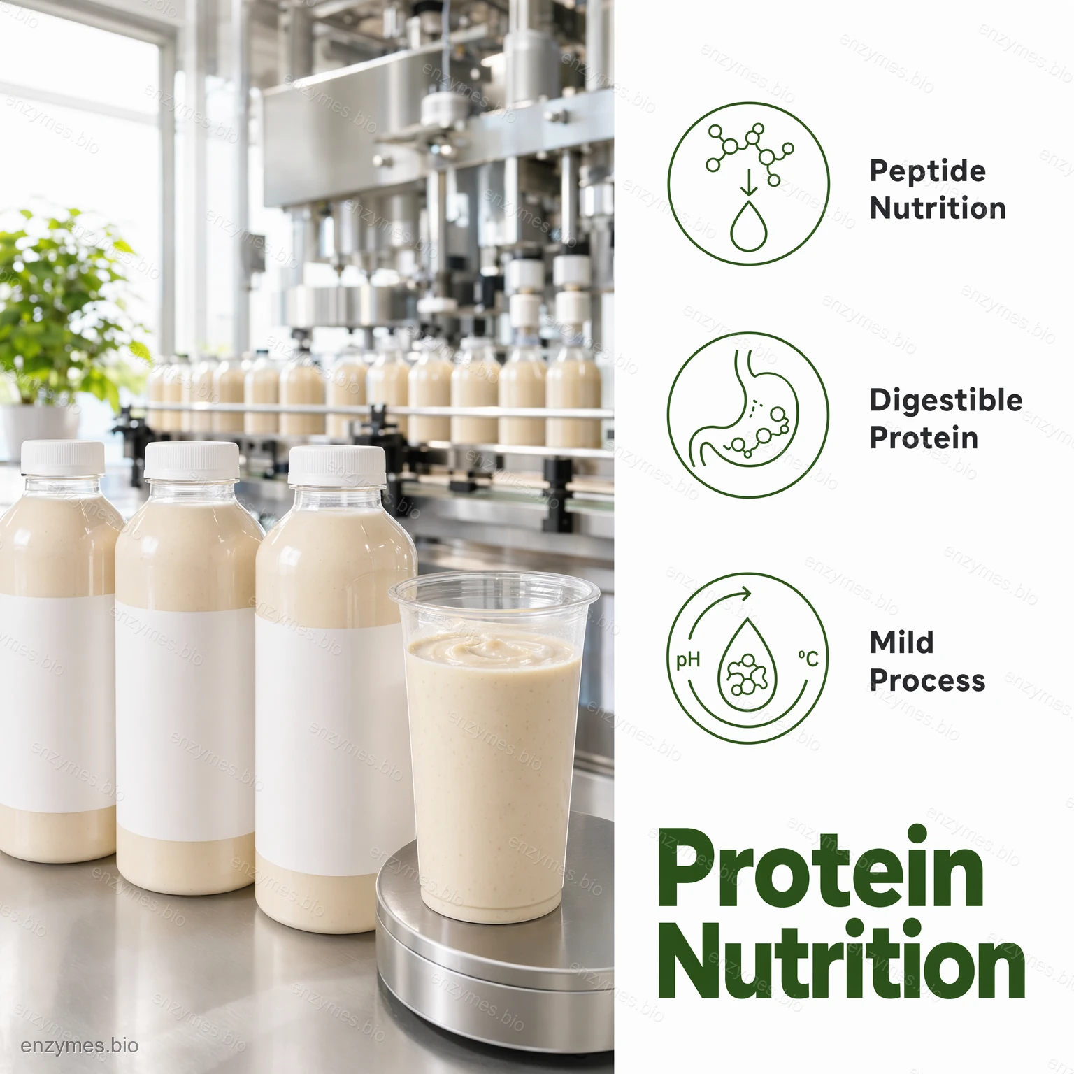 - Verhoogt het aandeel van kleine peptiden met een goede oplosbaarheid en biologische beschikbaarheid.