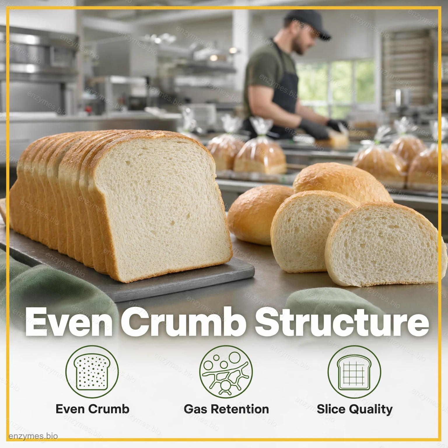 Ksylanaza działa na ksylan w mące i poprawia właściwości obróbki ciasta, strukturę miękiszu i właściwości sensoryczne wypieków. Może działać synergistycznie z innymi enzymami piekarniczymi, takimi jak amylaza grzybowa, oksydaza glukozy, lipaza itp.