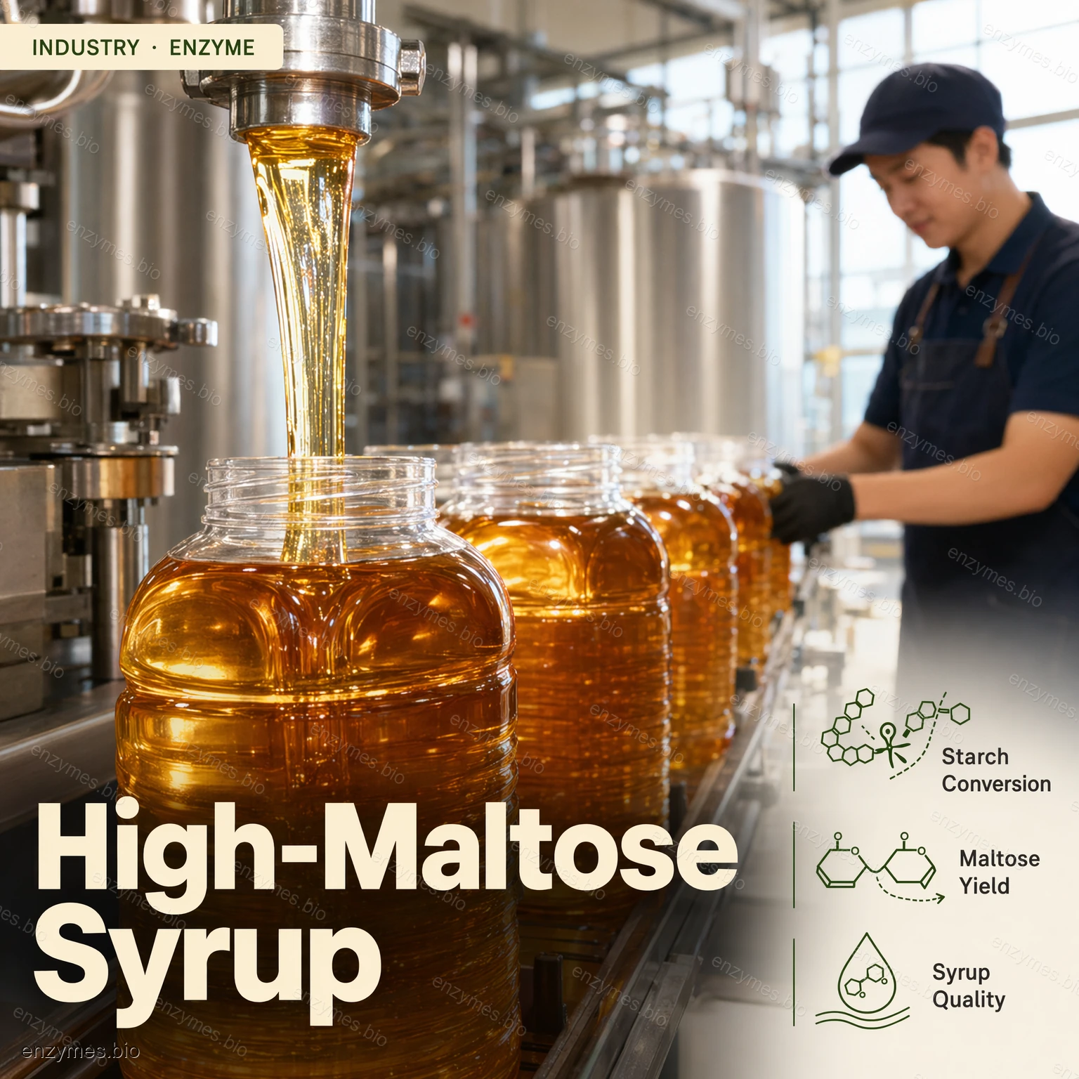 The Beta-Amylase is a preparation produced from plant material by extraction, purification and formulation. It is a thermostable high-performing product containing little side activities. It is widely used in brewing of beer and vinegar as well as in high maltose syrup production.