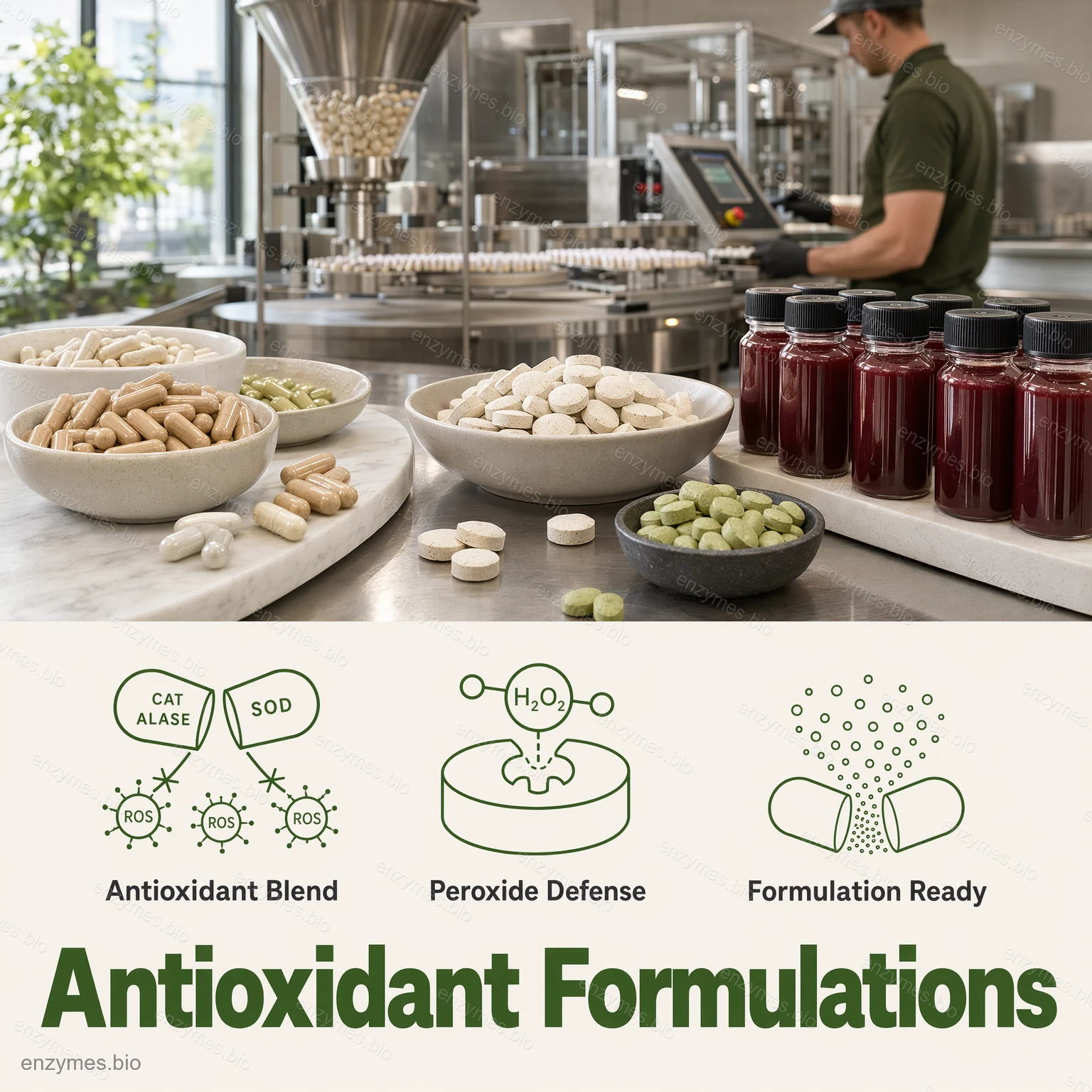 - Food processing: Some foods use strong oxidant hydrogen peroxide during processing, which can leave toxic residual hydrogen peroxide in the food. Catalase can help remove this residue.