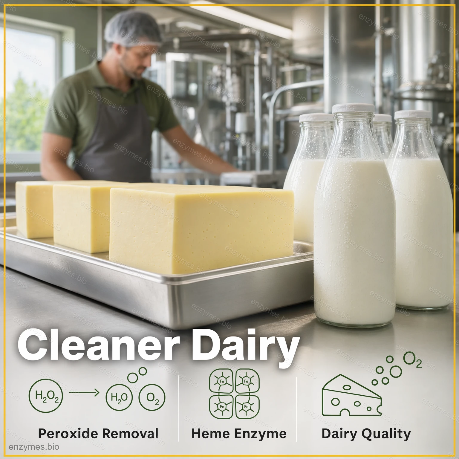 Catalase is used in the food industry to remove hydrogen peroxide from milk used to make cheese.