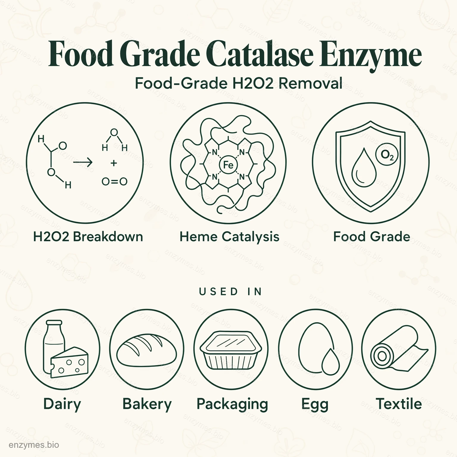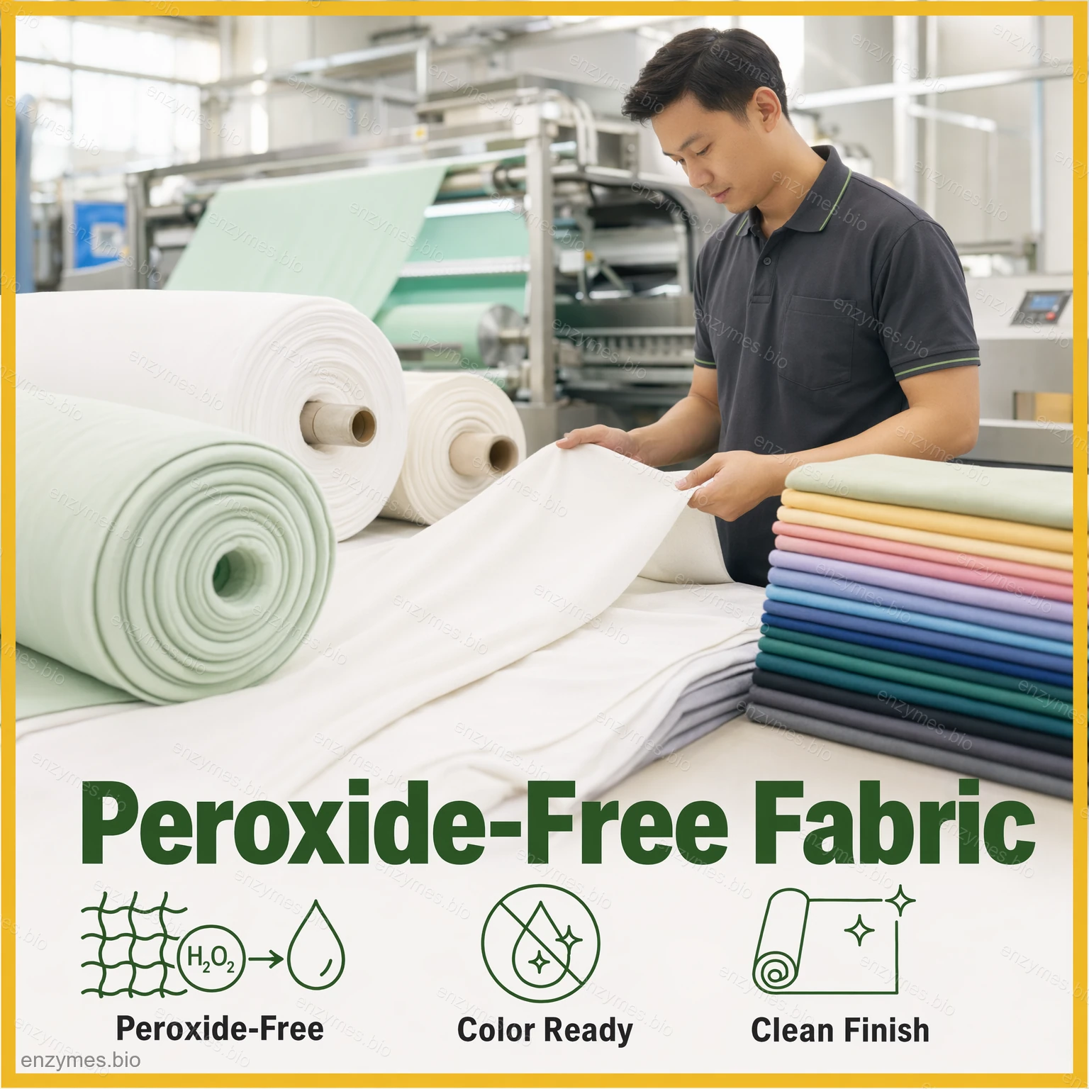 In the textile industry, catalase is used to remove hydrogen peroxide from textiles to ensure that the finished product is peroxide-free.