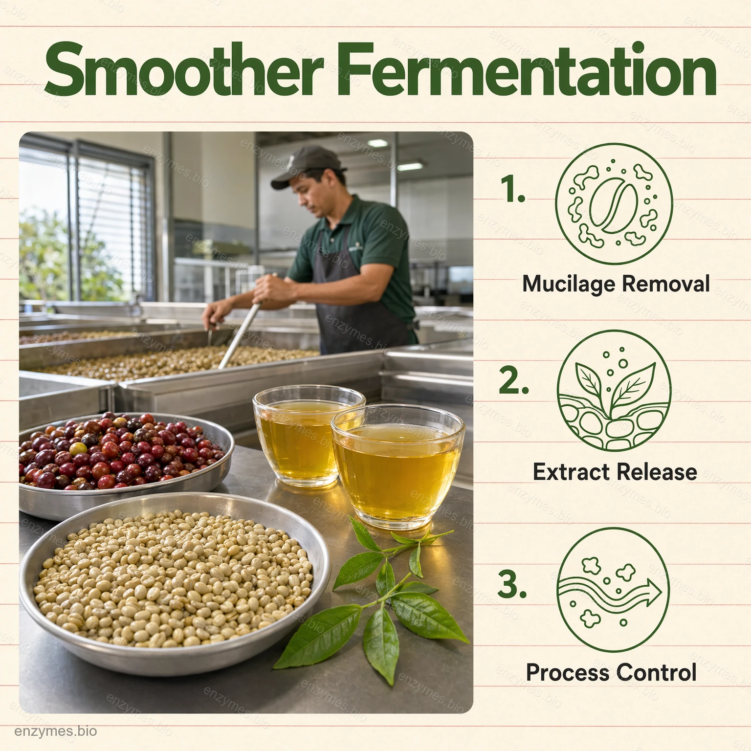 – Other uses for pectic enzymes in the food industry include softening fruit rinds to making peeling them easier, and to ferment coffee and tea.