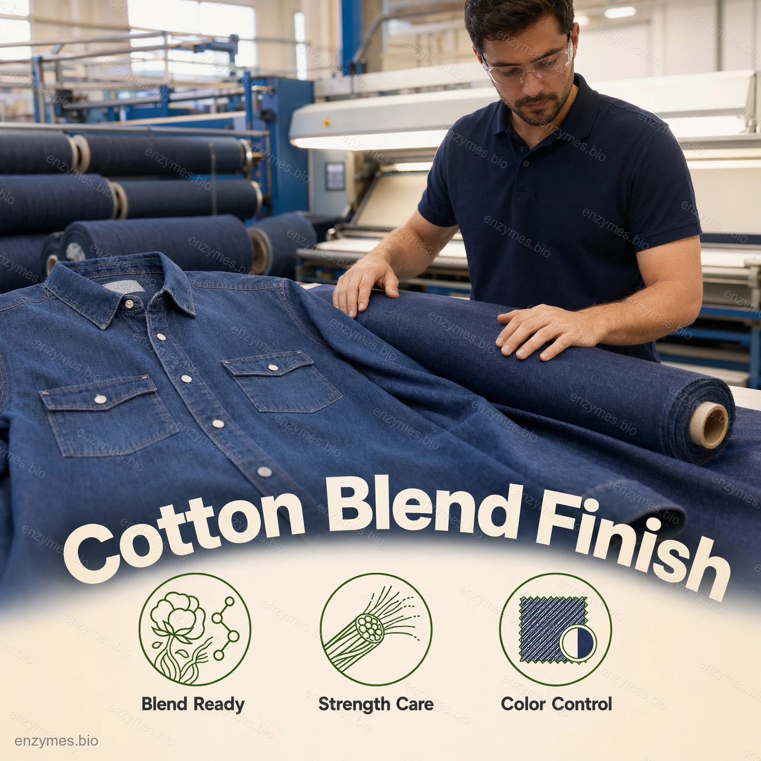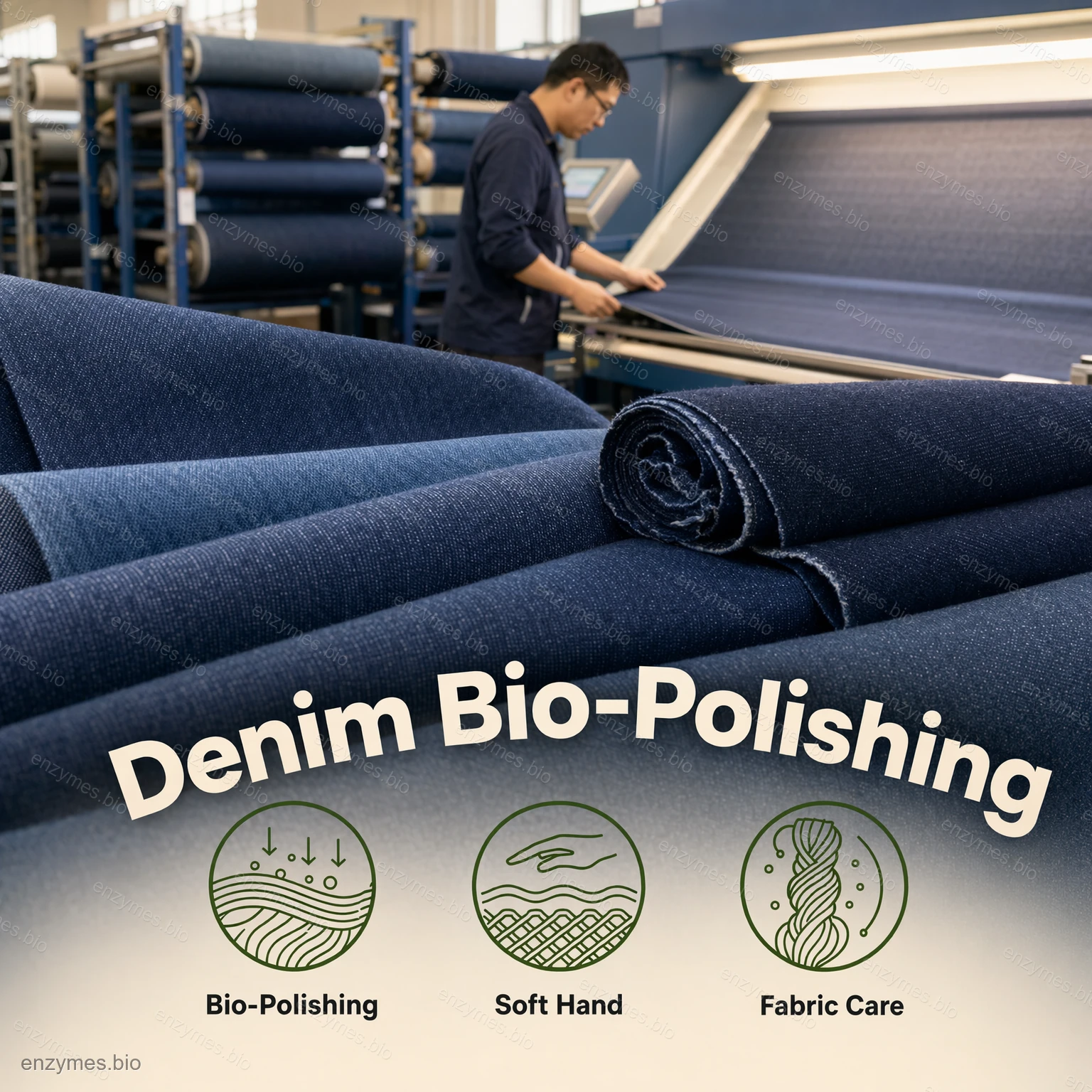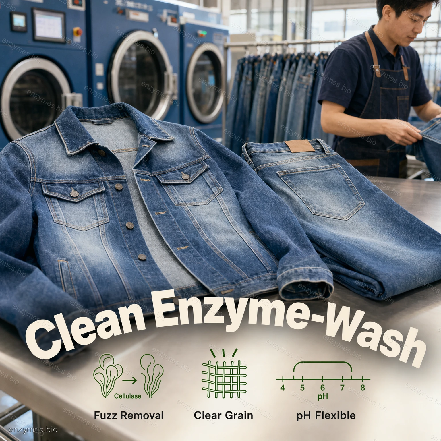 Ao atuar seletivamente nas fibras superficiais dos tecidos à base de algodão, a enzima remove suavemente as microfibrilas soltas e os fiapos superficiais. Esta ação de polimento biológico controlado revela a textura natural do denim, realça a profundidade visual e produz um efeito de desbotamento limpo e uniforme, sem danos excessivos. O resultado é um toque mais suave, uma definição mais clara dos fios e uma aparência vintage refinada.