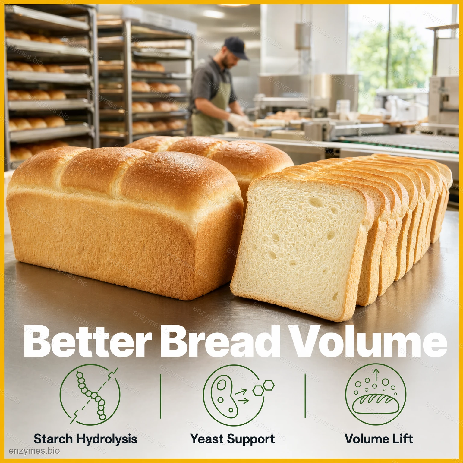 α-amilaza fungică este un tip endo de α-amilază care hidrolizează legăturile α-1,4-glucosidice ale amidonului gelatinizat și ale dextrinei solubile în mod aleatoriu, dând naștere la oligozaharide și o cantitate mică de dextrină care este benefică pentru corecția făinii, creșterea drojdiei, structura miezului, precum și volumul produselor de panificație.