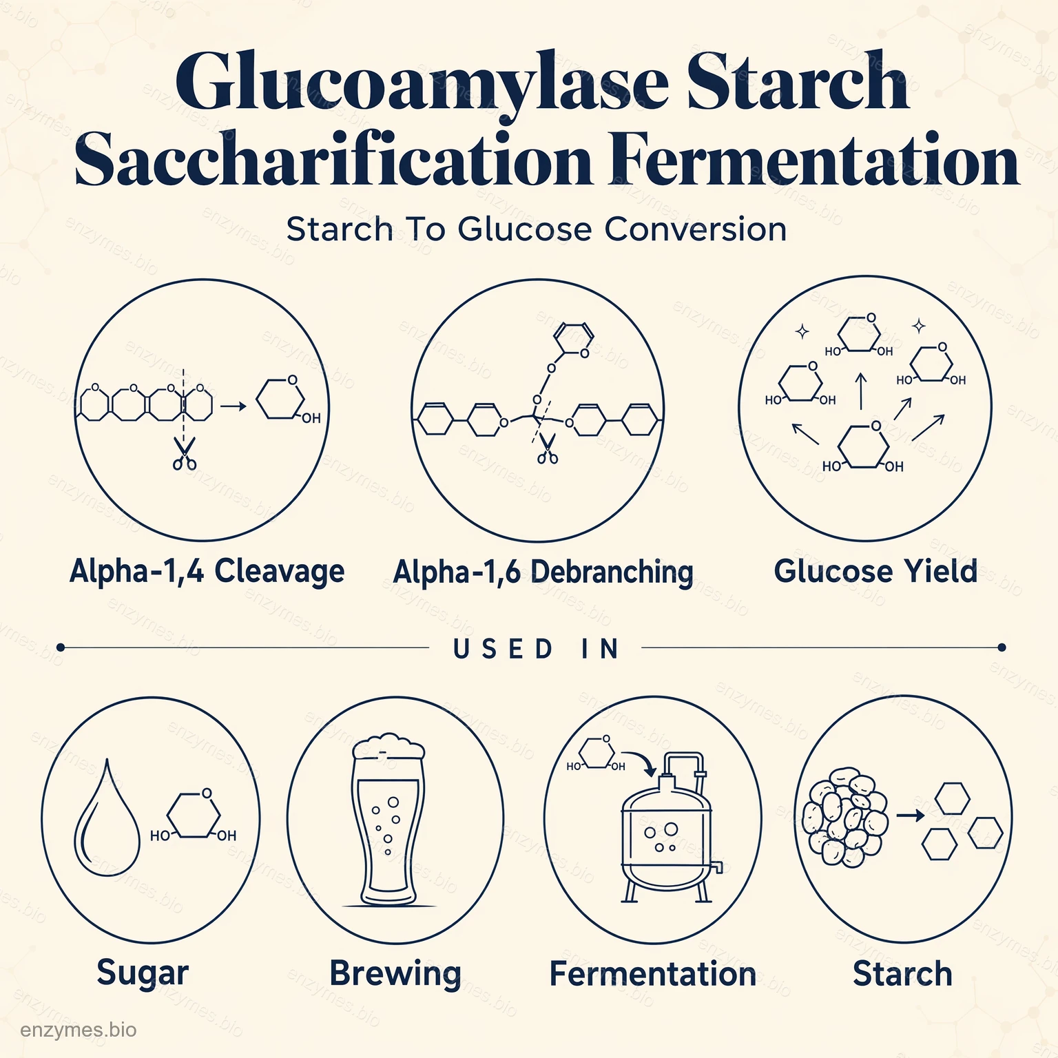 Funcția principală a glicozilazei este de a hidroliza legătura glicozidice a1,4 de la capătul nereducător al lanțului de carbon de amidon, dextrină, glicogen etc. și de a tăia fiecare unitate de glucoză. Pentru amidonul ramificat, poate hidroliza și legătura glicozidică a-1,6 atunci când se întâlnește cu punctul de ramificare, hidrolizând astfel tot amidonul ramificat în glucoză.