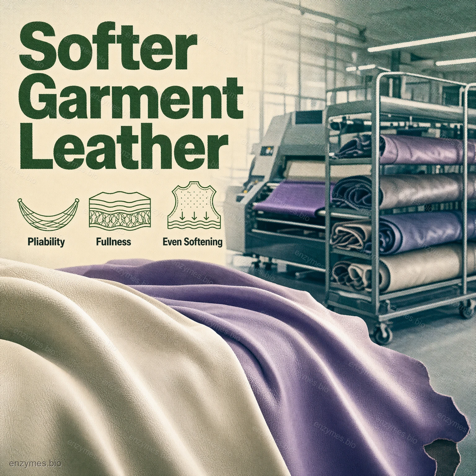 Эффективность мягкая и сбалансированная. Эффективно улучшить гибкость и полноту кож, увеличить выход кожи. При использовании в восстановлении wet-blue, он способствует усвоению дубильных веществ и улучшает равномерность окраски. Имеет очень хорошую проницаемость, и может быть получен равномерный смягчающий эффект. Его использование не приведет к рыхлому зерну на коже.