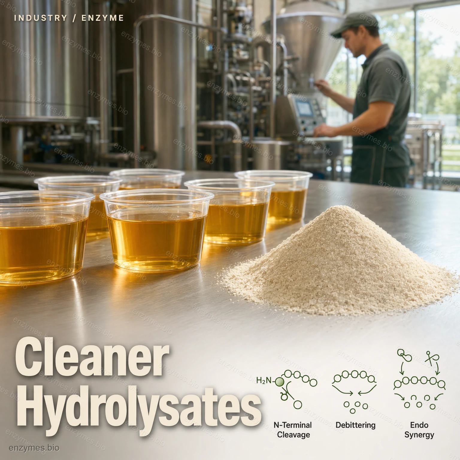 Aminopeptidáza je exopeptidáza, ktorá oddeľuje aminokyseliny od N-konca peptidového reťazca. Horkosť alebo chuť peptidu má niečo spoločné s dĺžkou reťazca a zložením aminokyselín. S odstránením aminokyselín z koncov sa funkčnosť a chuť zostávajúcich peptidov zodpovedajúcim spôsobom zmení, čím hydrolyzát získa požadované vlastnosti. Aminopeptidáza sa často používa spolu s endopeptidázou.