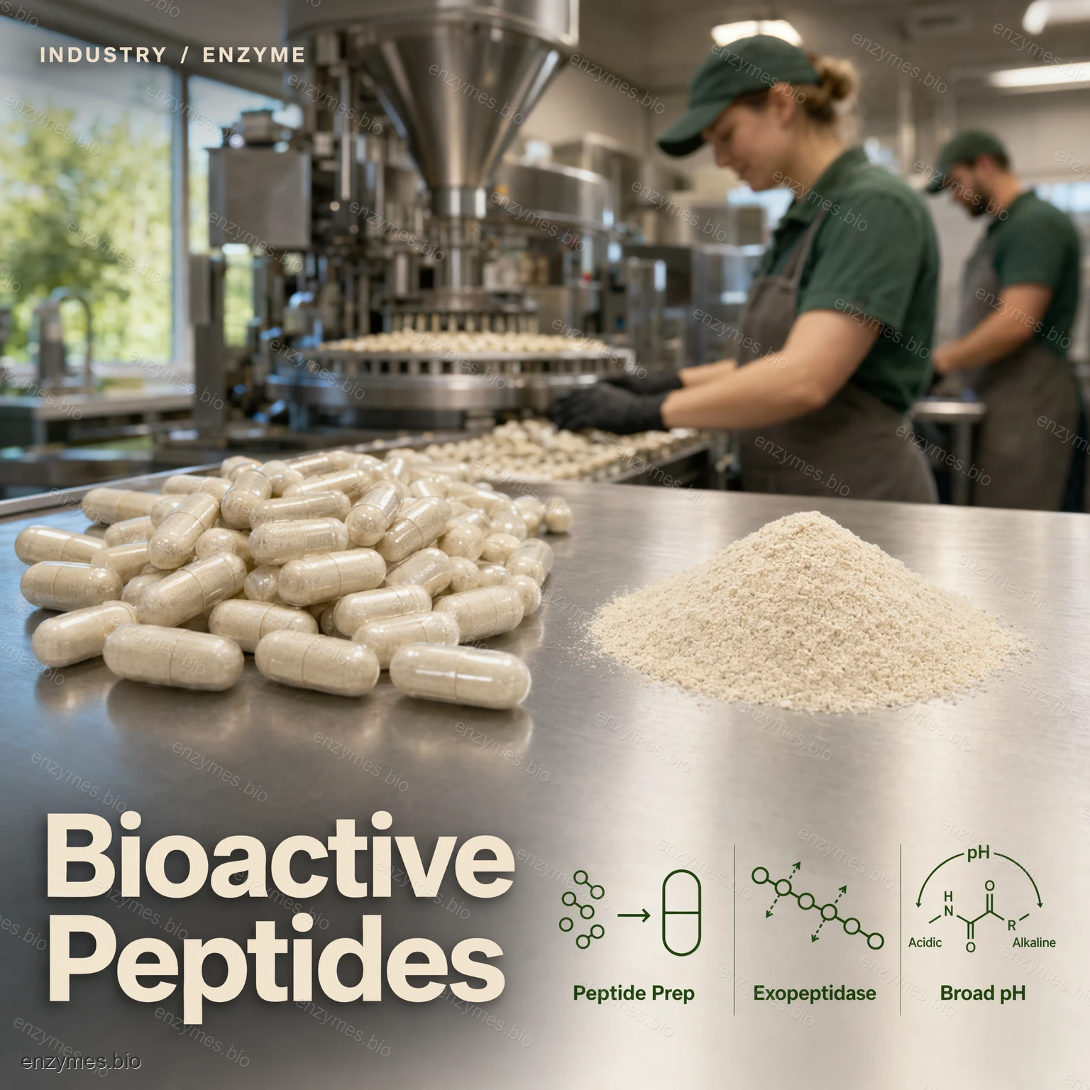 Aminopeptidáza sa vyrába submerznou fermentáciou Aspergillus oryzae, po ktorej nasleduje čistenie, formulácia a sušenie. Produkt sa používa na odstránenie horkosti proteínového hydrolyzátu, dôkladnú hydrolýzu proteínu a prípravu bioaktívneho polypeptidu.