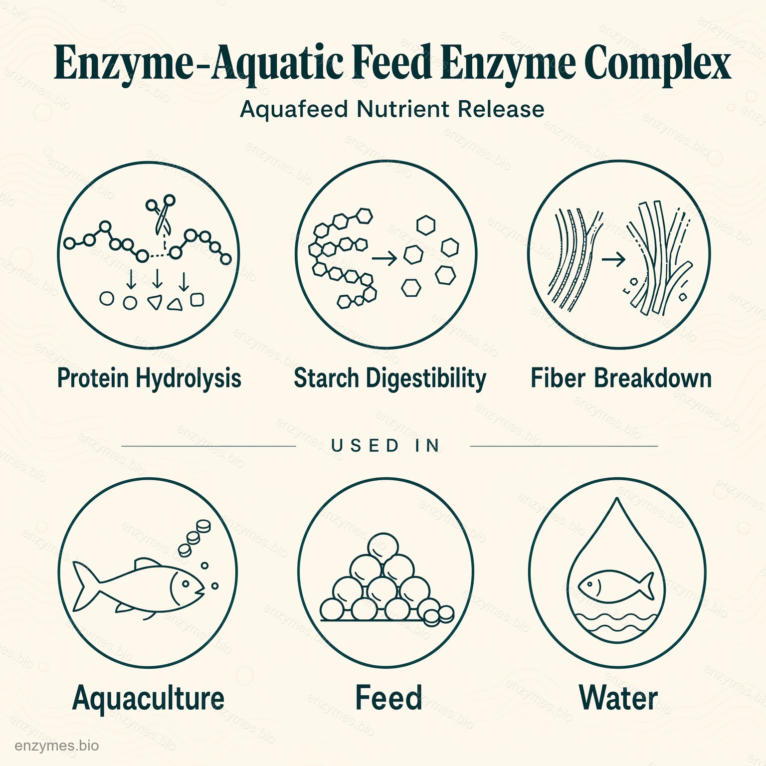 Enzýmový komplex pre vodné krmivo pre ryby je pokročilá multienzýmová prísada do krmiva navrhnutá špeciálne pre tráviacu fyziológiu a nutričné potreby morských aj sladkovodných rýb.