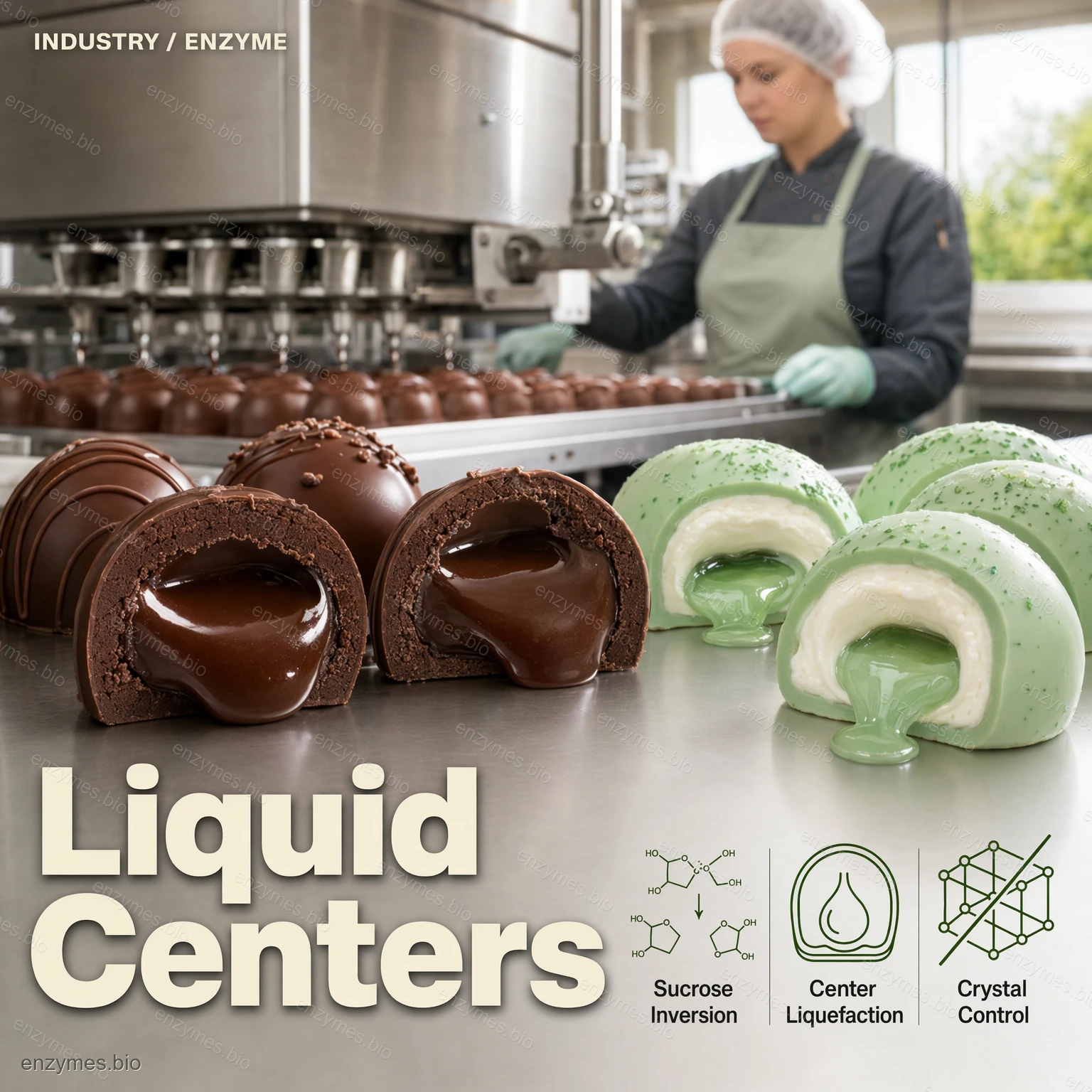 Invertáza je enzým získaný z kvasiniek, ktorý vykonáva hydrolýzu koncových neredukujúcich zvyškov β-D-fruktofuranozidu v β-D-fruktofuranozidoch. Invertáza štiepi sacharózu na glukózu a fruktózu (invertný sirup) a môže sa použiť na akúkoľvek inverziu sacharózy, najmä na skvapalnené čerešňové jadro, krémy, mäty, hľuzovky, ibištek, invertný sirup a iné fondanty. Invertáza sa používa na zlepšenie trvanlivosť cukroviniek.