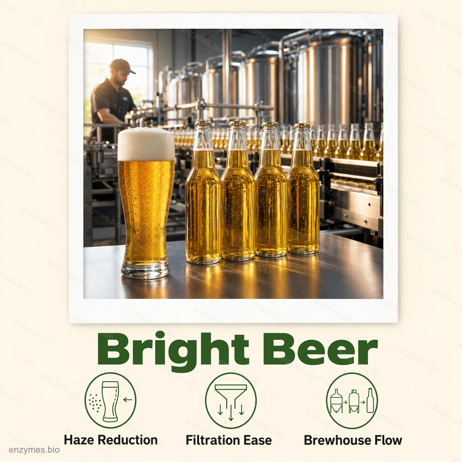 - Zmanjša tveganje zamegljenosti piva, ki izvira iz arabinoksilanov in sorodnih ogljikovih hidratov.