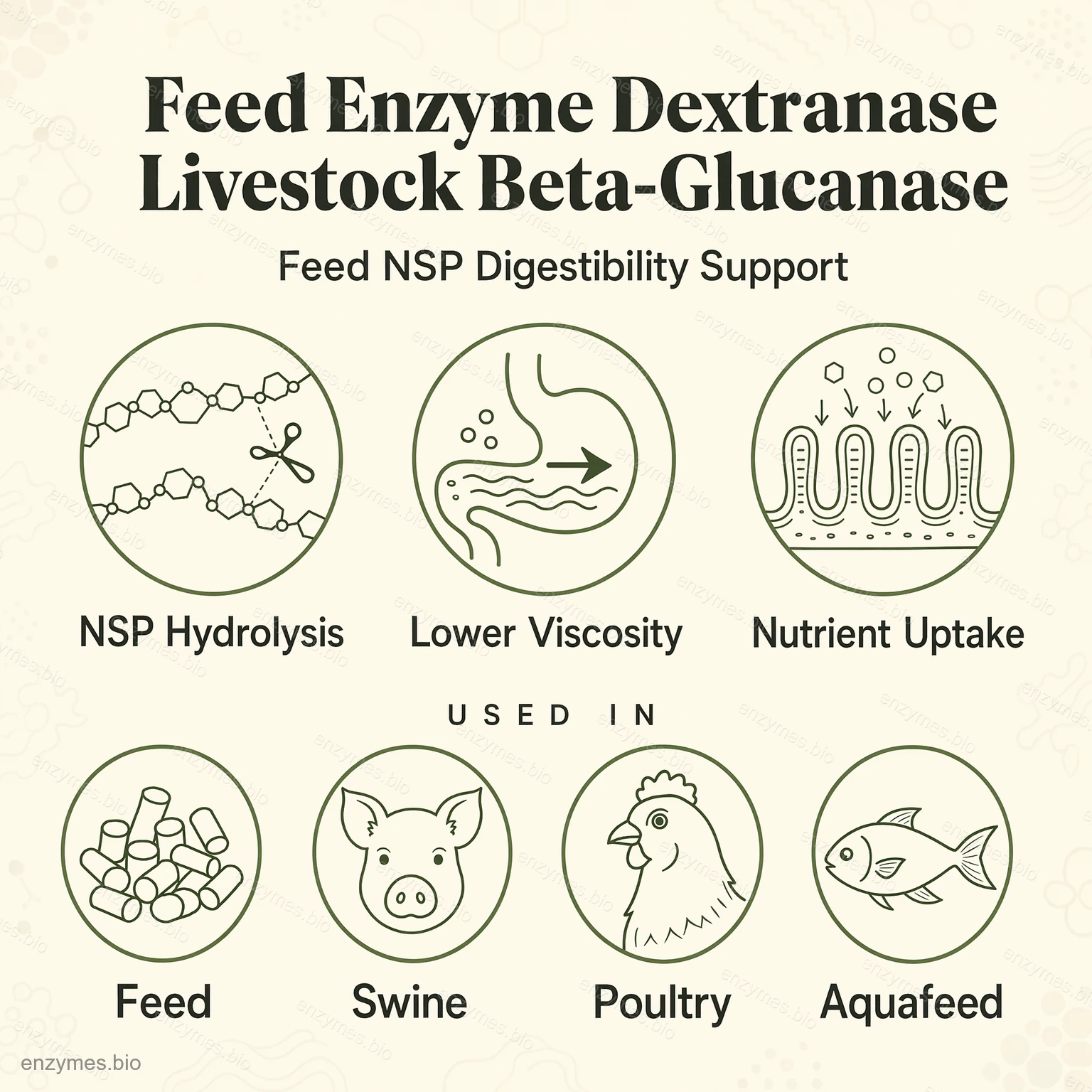 β-Mananaza je neke vrste hemicelulozna hidrolaza, ki lahko uniči β-1,4-glikozidno vez in razgradi β-manan, galaktomanan in glukomanan v manan-oligosaharid in manozo. Medtem lahko zmanjša antinutritivne učinke manana in zmanjša viskoznost digesta.