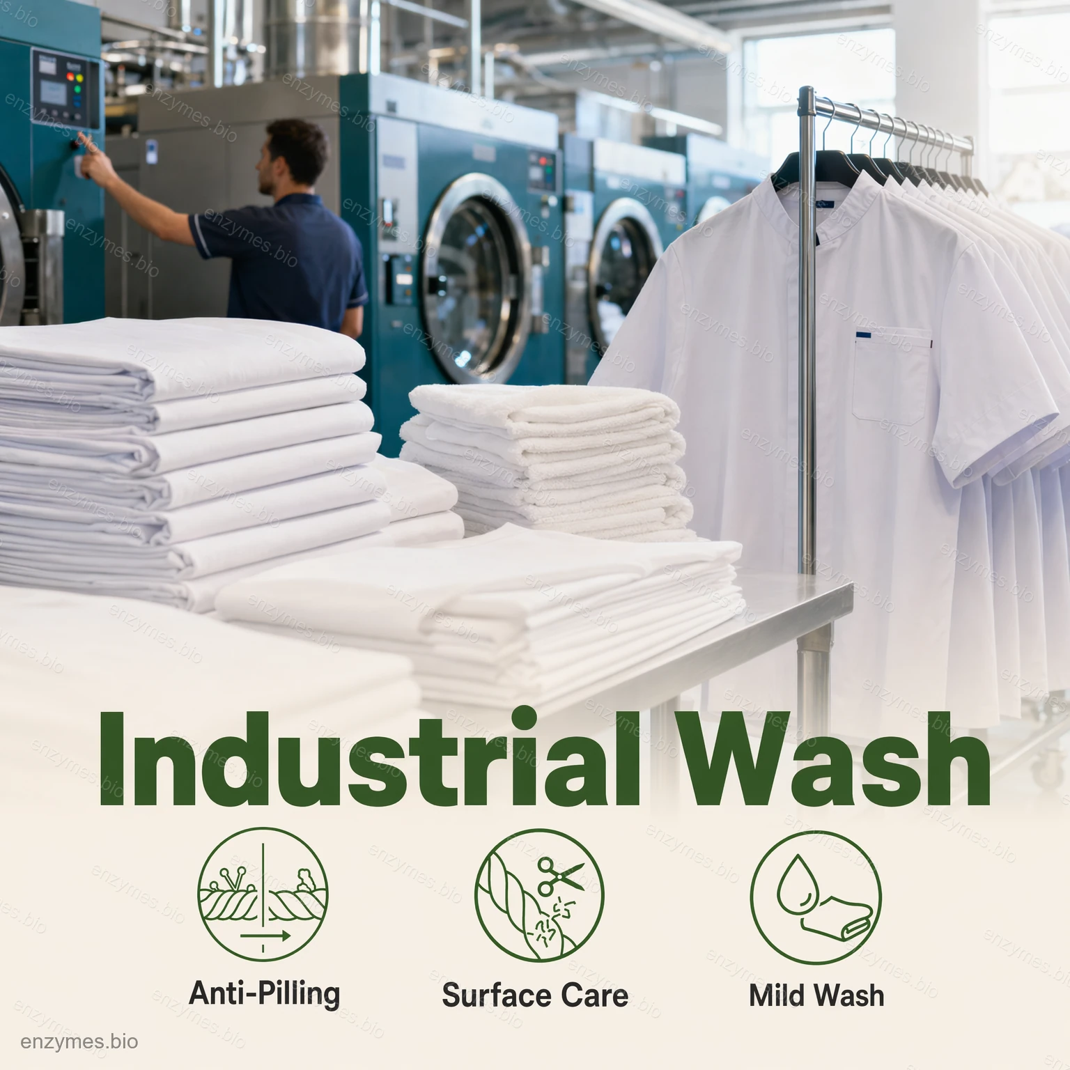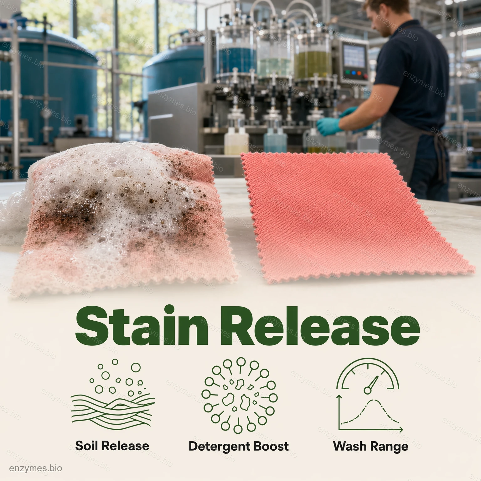 Amylaset bryter ned stärkelse till vattenlösligt dextrin, oligosackarider och slutligen glukos, vilket gör att stärkelsefläckarna solubiliseras och tas bort.